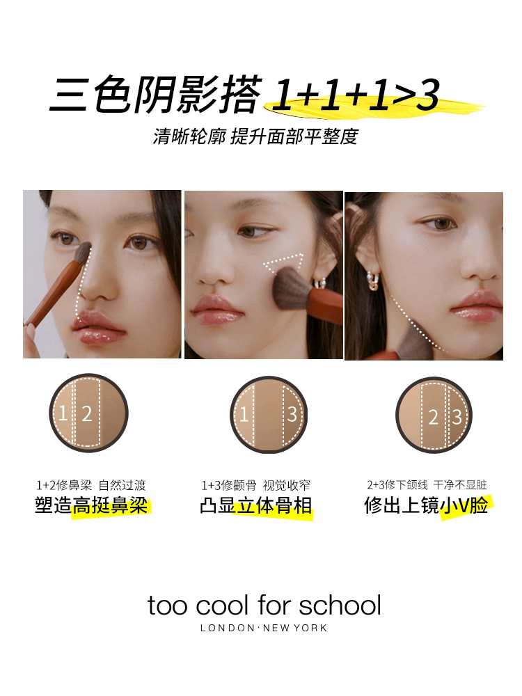 | nameOriginal | toocoolforschool three-color contouring palette high-gloss eye shadow nose shadow silhouette shadow hairline all-in-one palette |