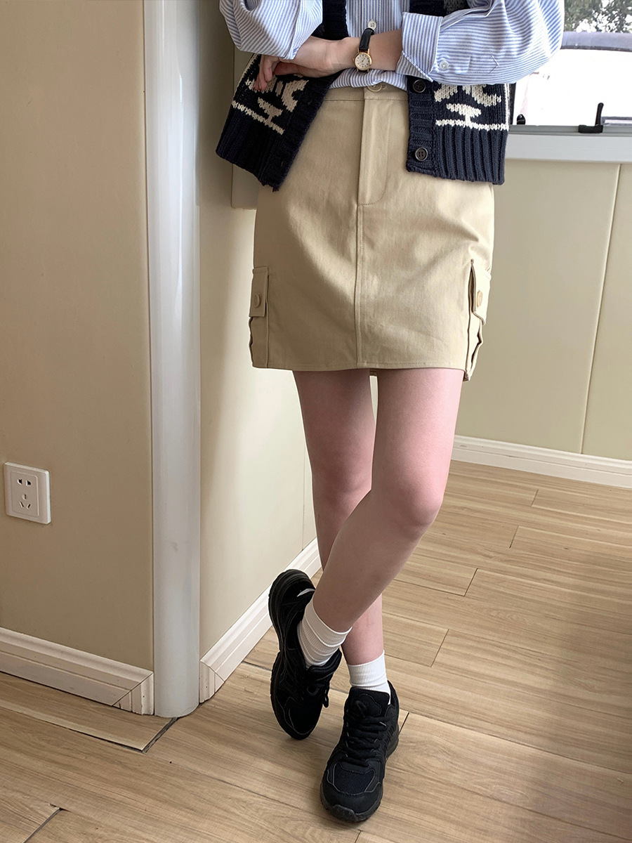 Tooling Style A- Line Short Skirt Women’s Summer Korean-style Lined Anti-slip Skirt High Waist Slimming All-match Skirt