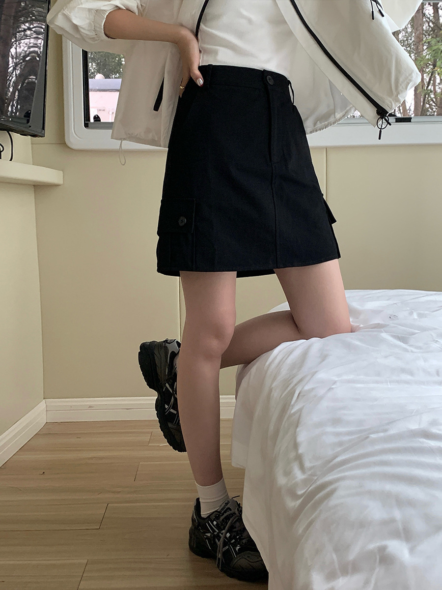Tooling Style A- Line Short Skirt Women's Summer Korean-style Lined Anti-slip Skirt High Waist Slimming All-match Skirt