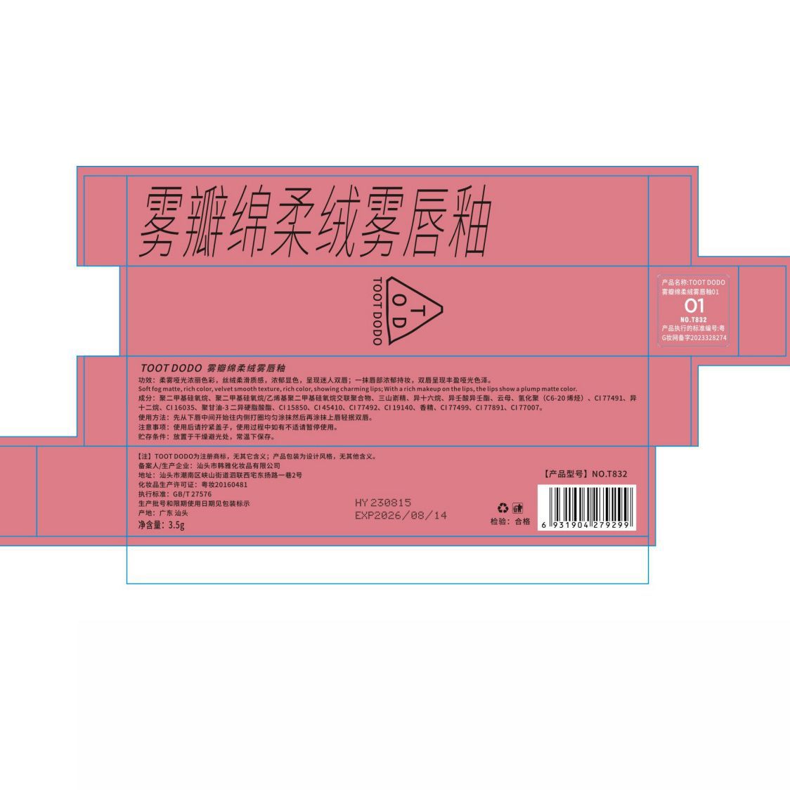 | nameOriginal | Toot Dodo ~ soft velvet mist cloud lip glaze matte surface white mouth red mud student cheap domestic makeup |