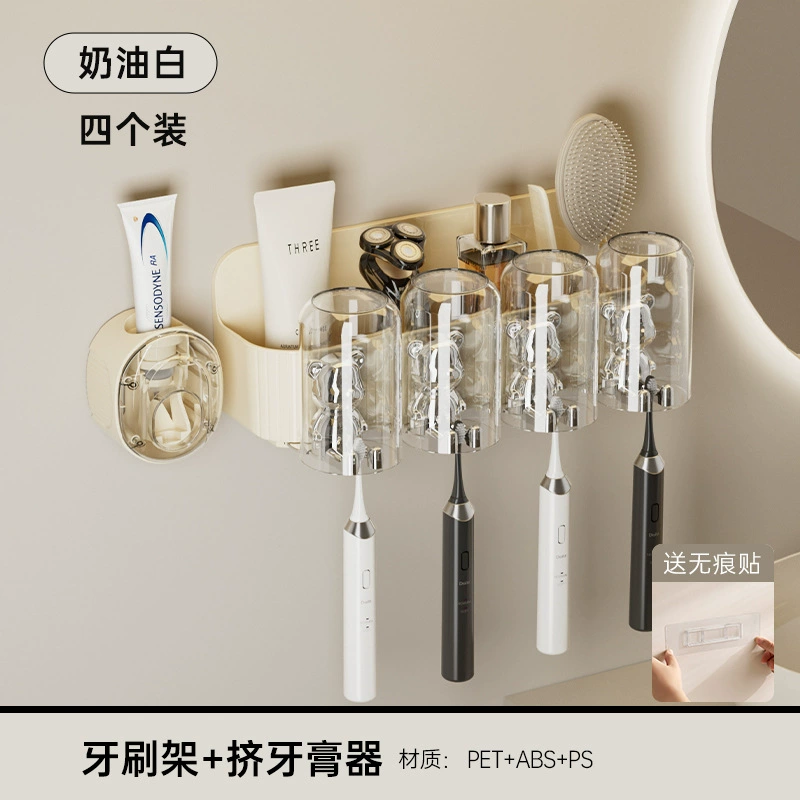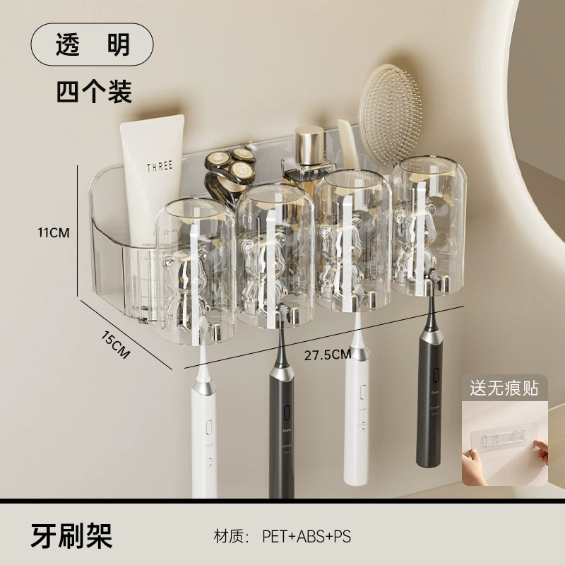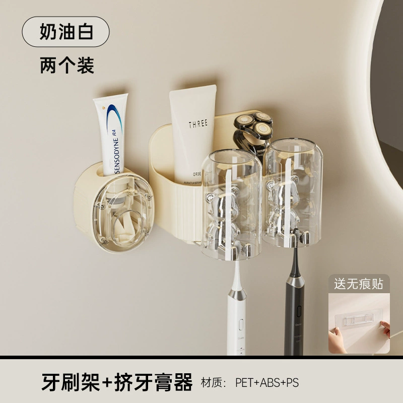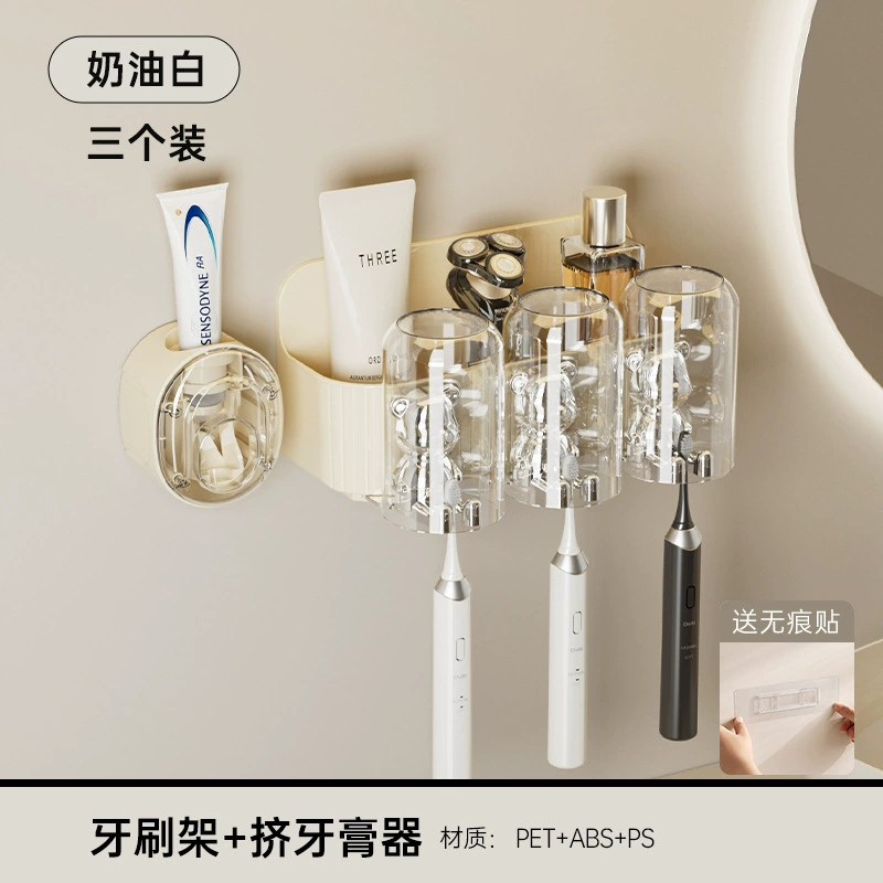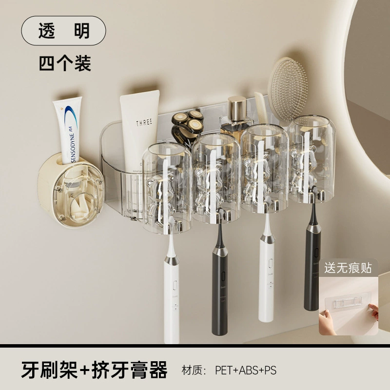 Tooth cup toothbrush storage rack no punching wall hanging bathroom automatic toothpaste squeezer bathroom mouthwash cup storage rack