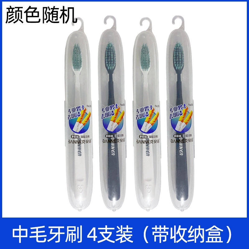 | nameOriginal | Toothbrush with hard bristles, large head, adult, 4-piece storage box for removing tooth stains and tobacco stains, men's travel home, medium-bristle |