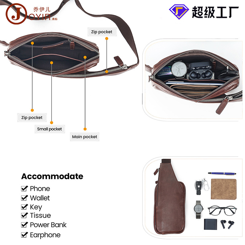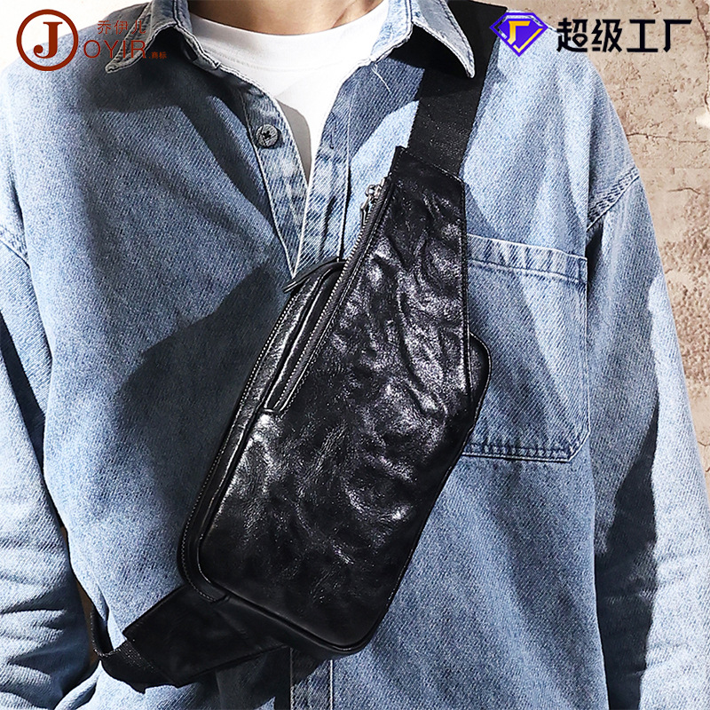 Top Layer Cowhide Men’s Chest Bag Crossbody Bag Casual Vintage Small Backpack Men’s Bag Genuine Leather All-match Crossbody Bag Trendy Men’s Bag