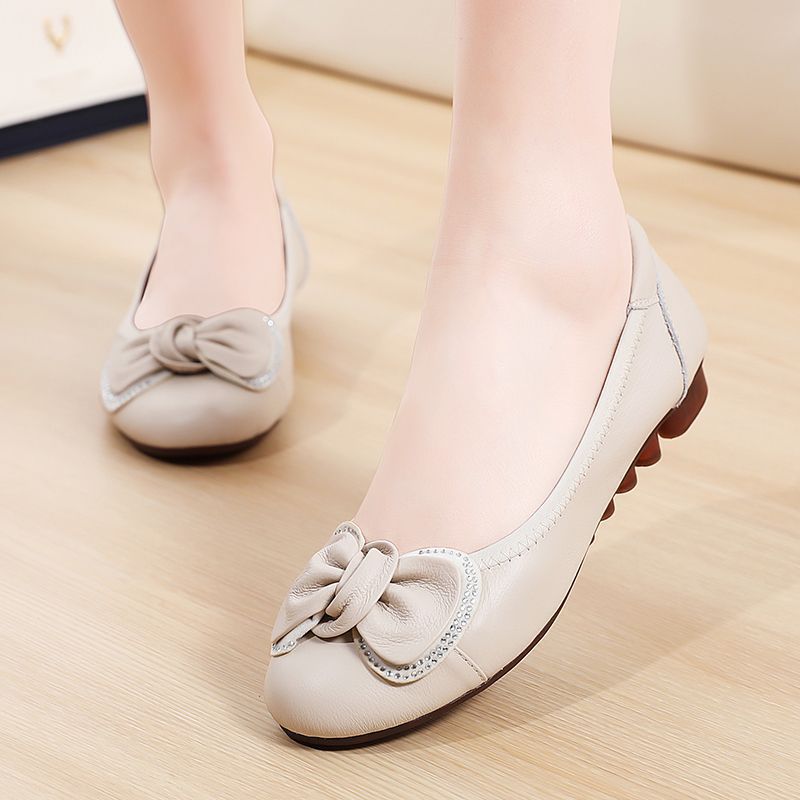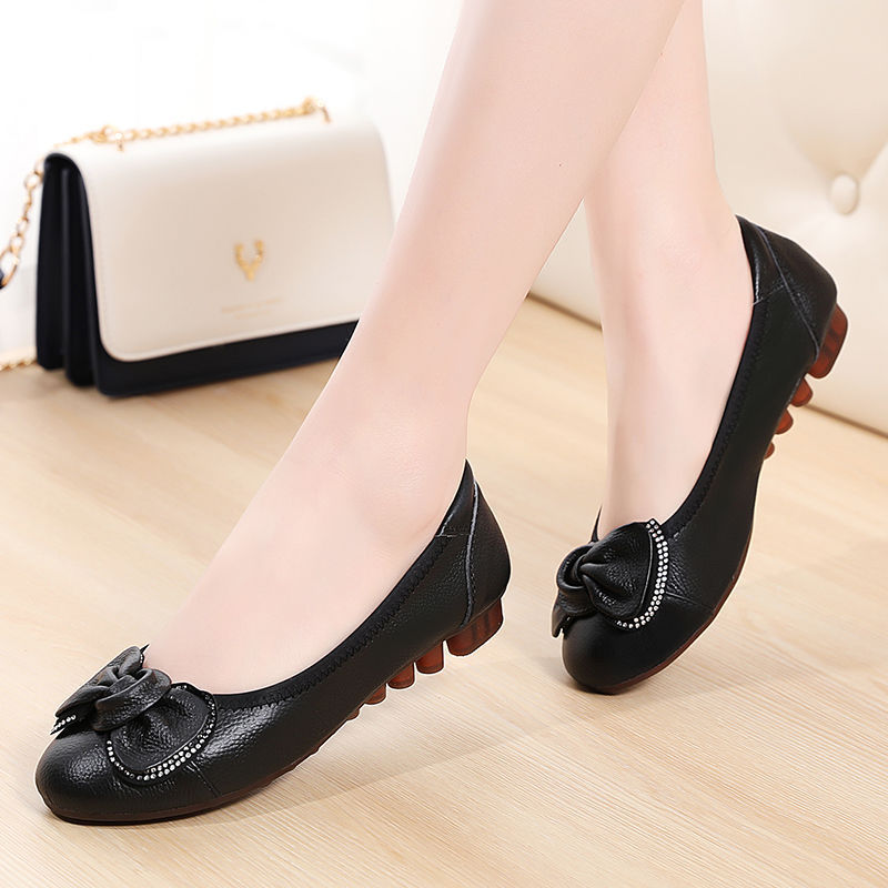 Top Layer Cowhide Pea Shoes Women’s Spring and Autumn Comfortable Genuine Leather Beef Sole Fashion Shallow Mouth Soft Bottom Soft Face Pregnant Women’s Mother Cross Border