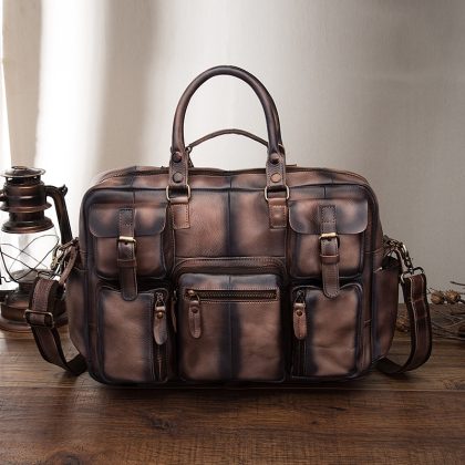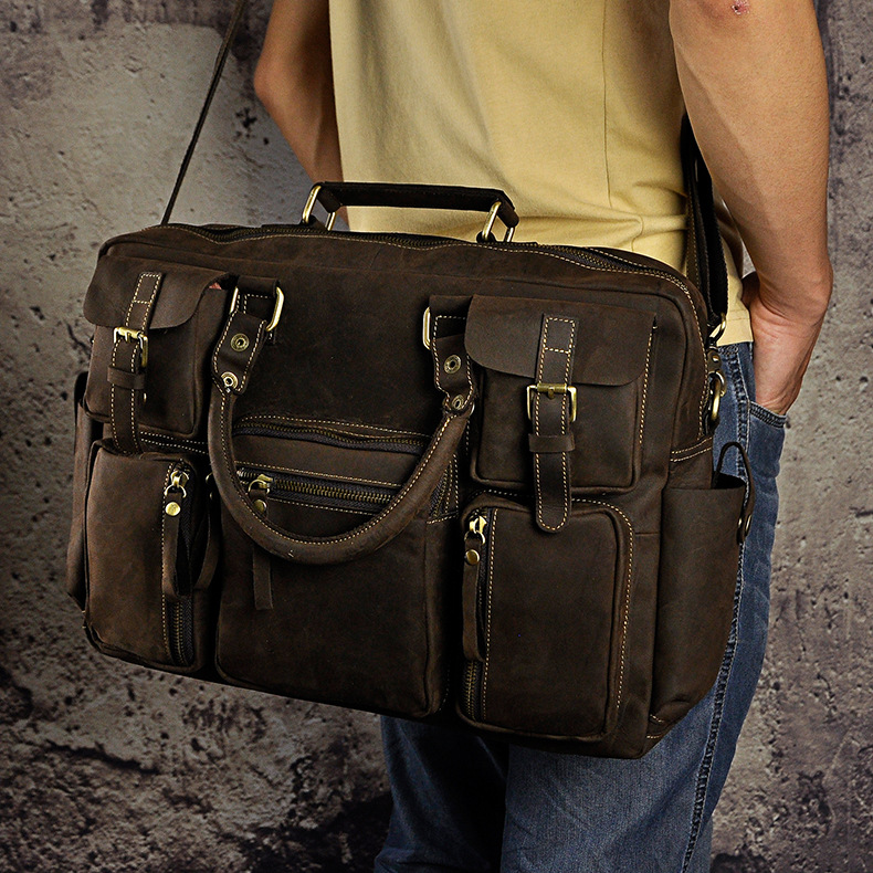 Top layer Crazy Horse leather cowhide foreign trade Men’s 16 inch domineering large capacity portable document computer bag 3061