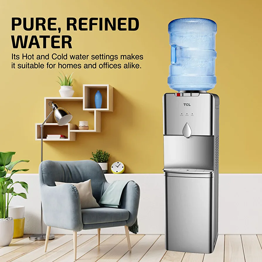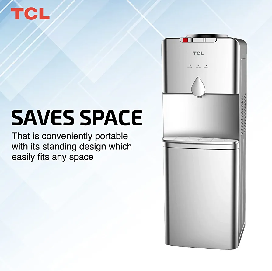 Introducing the TCL Water Dispenser – the perfect addition to your home, kitchen, or office pantry. This top-loading dispenser offers hot, cold, and normal temperature options, ensuring that you always have access to the perfect temperature of water for your needs. The sleek silver color adds a touch of modern elegance to any space. With a minimum 1-year manufacturer warranty, you can trust that this dispenser is built to last. Say goodbye to the hassle of constantly refilling water bottles and enjoy the convenience of the TCL Water Dispenser.