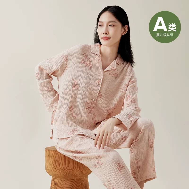 Top-quality pure cotton women's lapel double-breasted long-sleeved pajamas