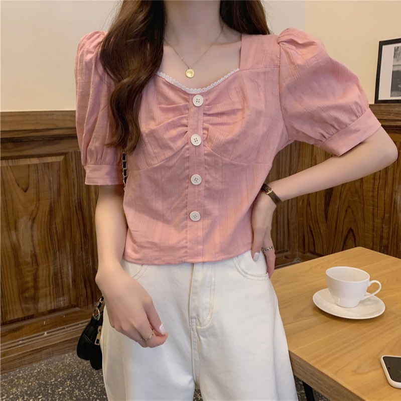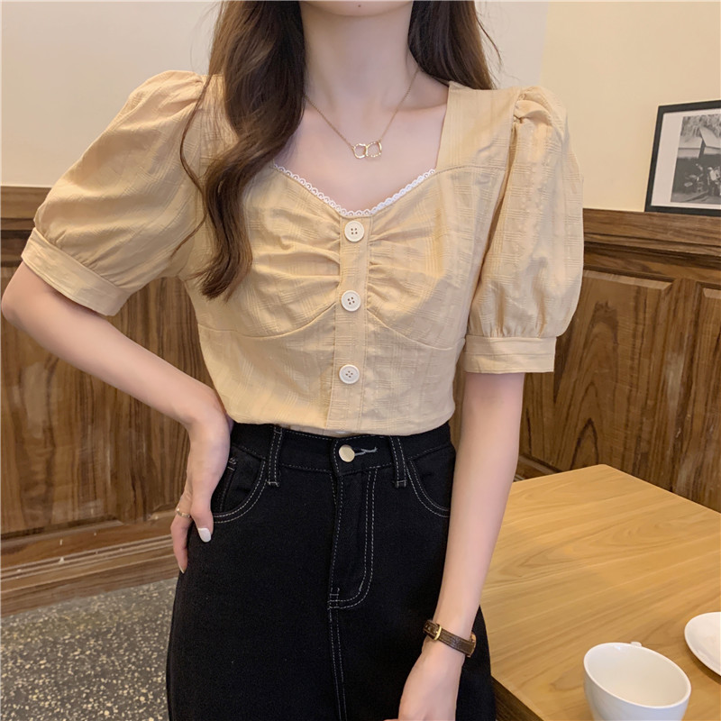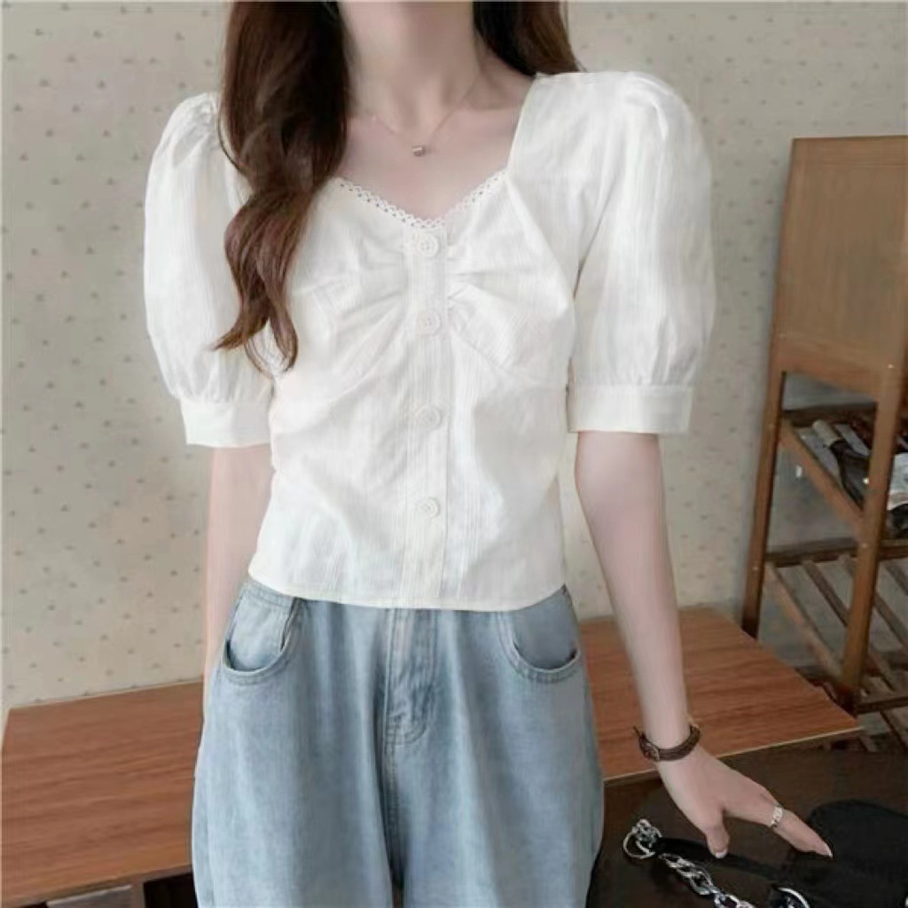 | nameOriginal | Top Shirt Women's Design Niche Summer Thin 2024 New French Style Chic Slim Puff Sleeve Trendy Shirt |