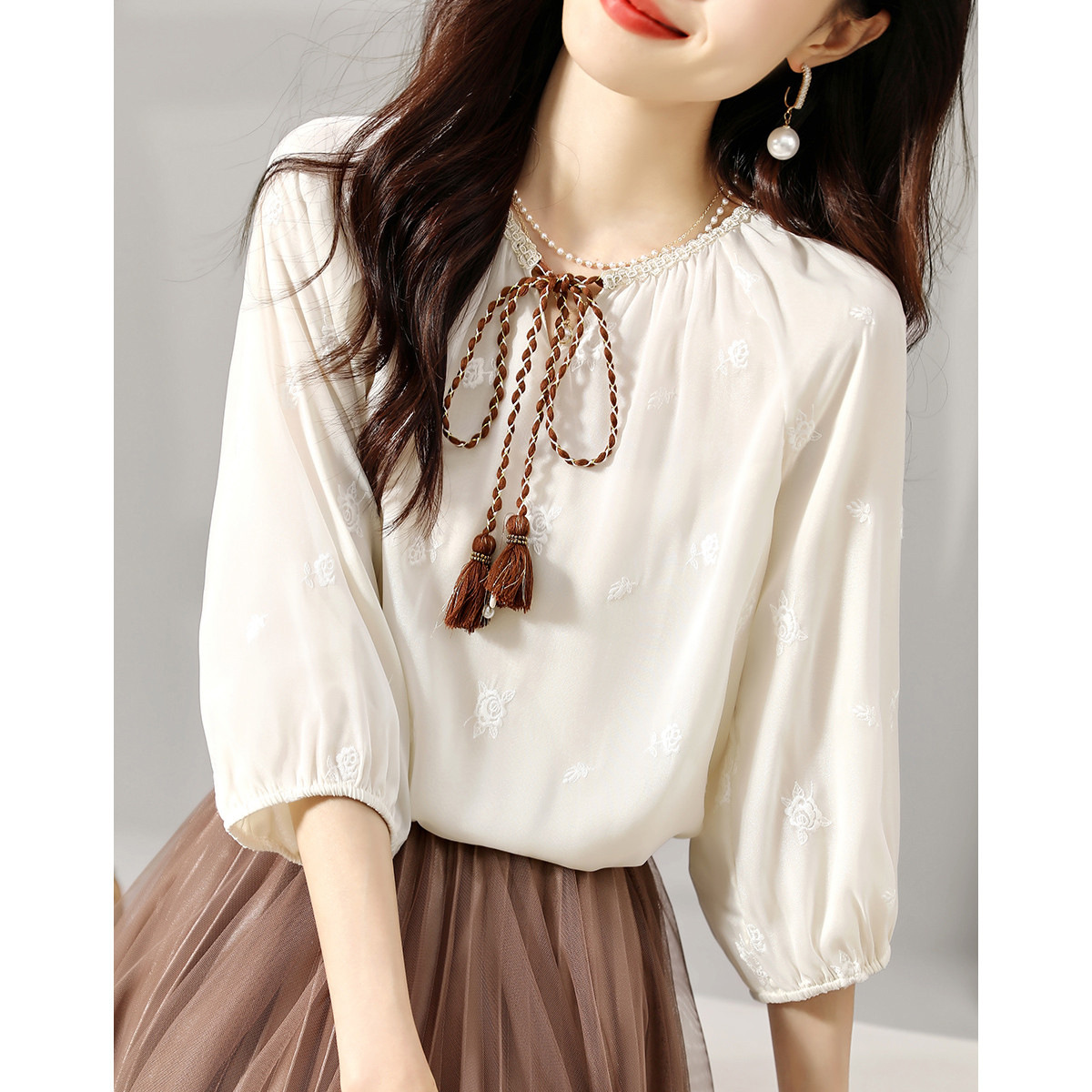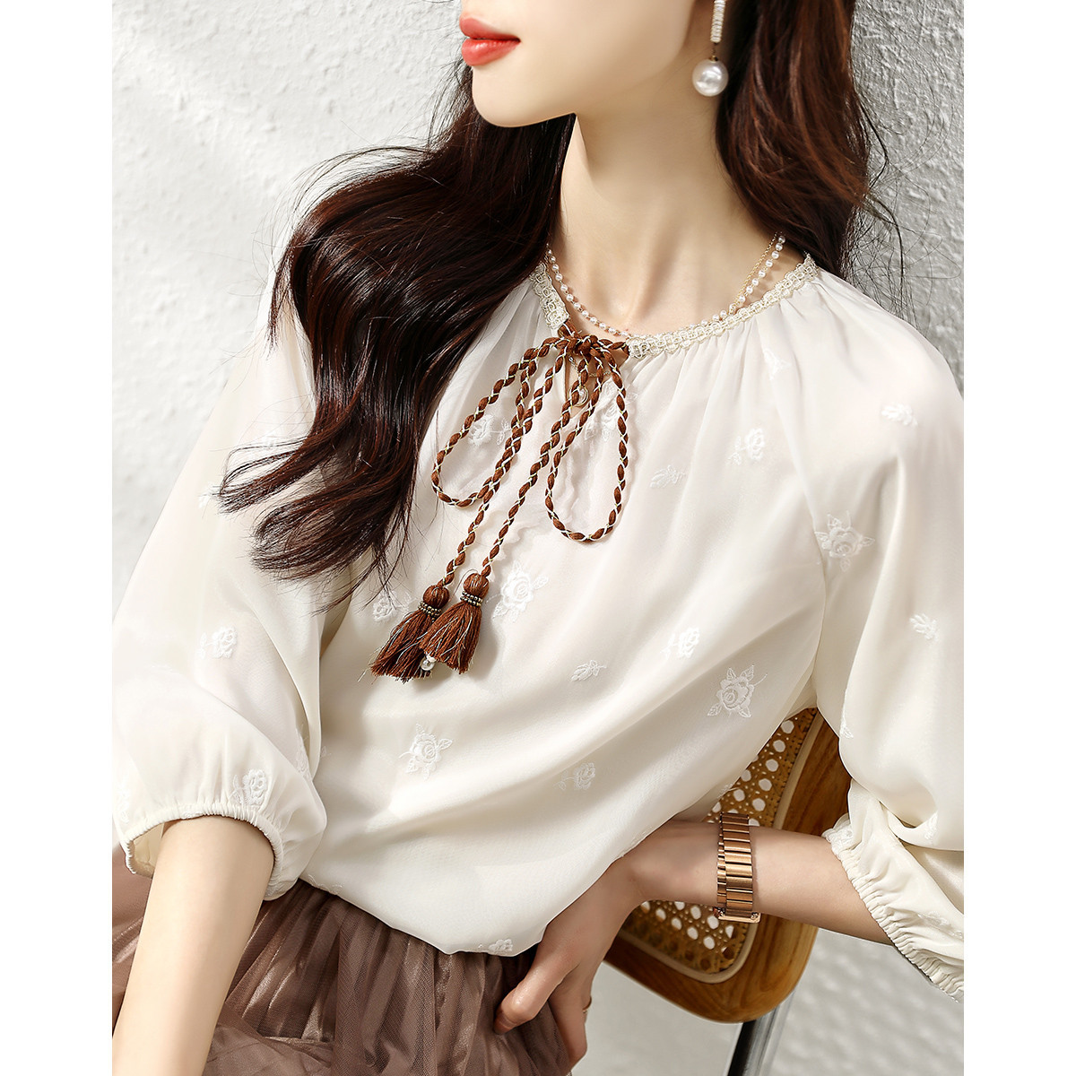 | nameOriginal | Top short sleeve silk mulberry silk t-shirt lace 2024 new summer fashion foreign temperament fashionable women's foreign trade |