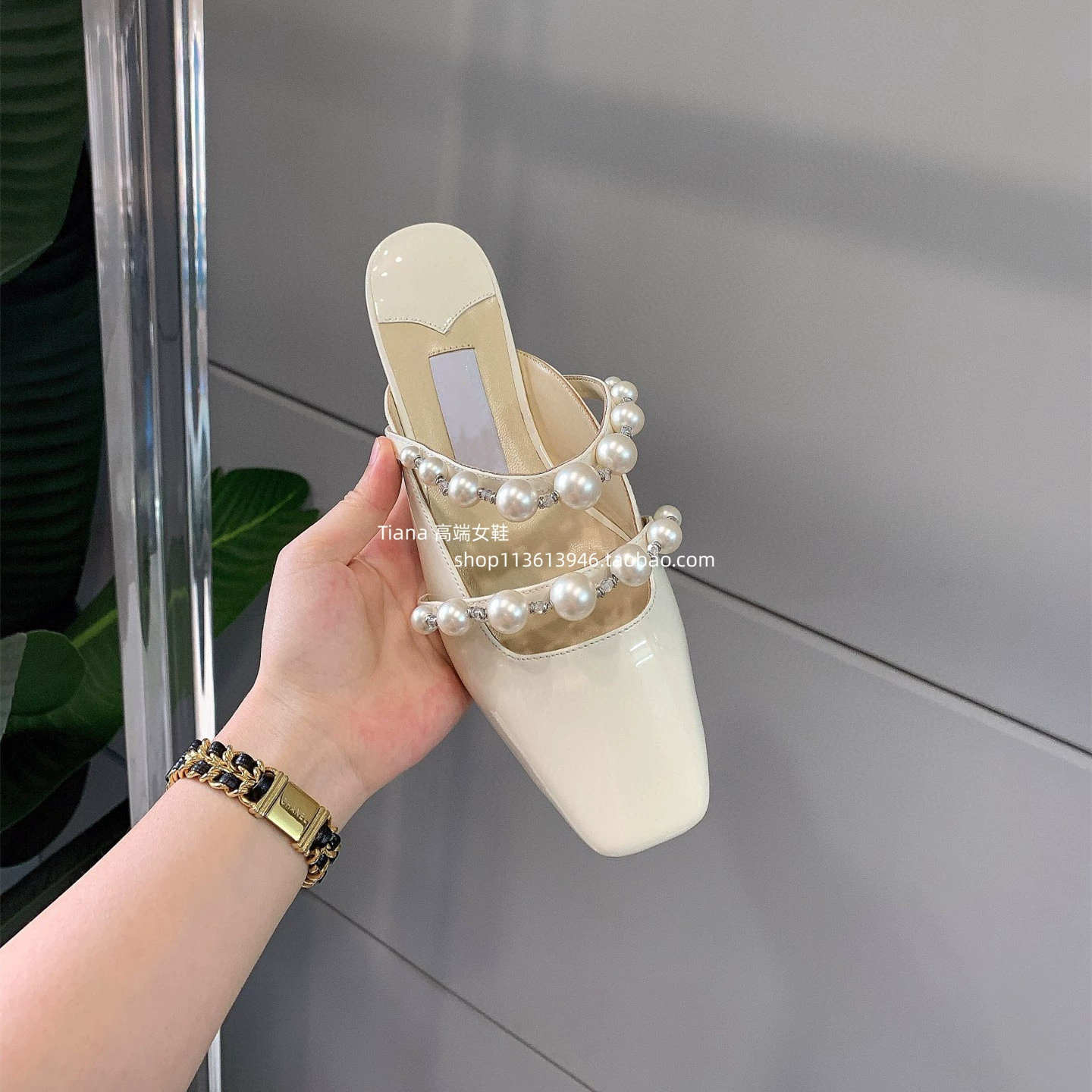 | nameOriginal | Top version ~ buy, buy, buy! Pearl half-mules genuine leather shallow mouth square toe flat shoes with rhinestones for women |