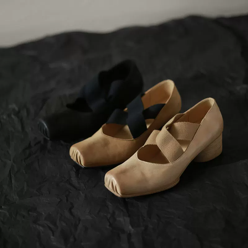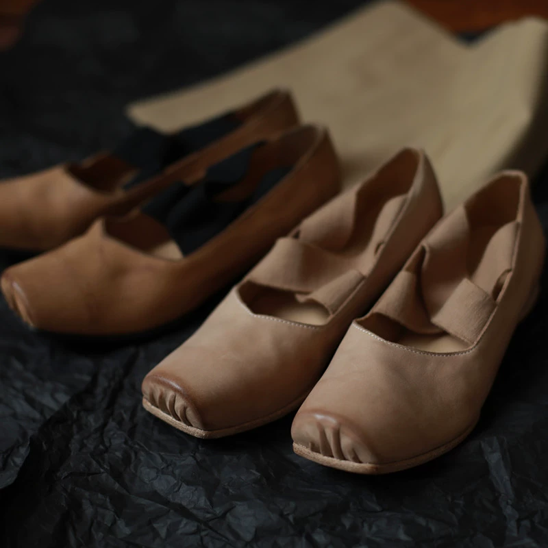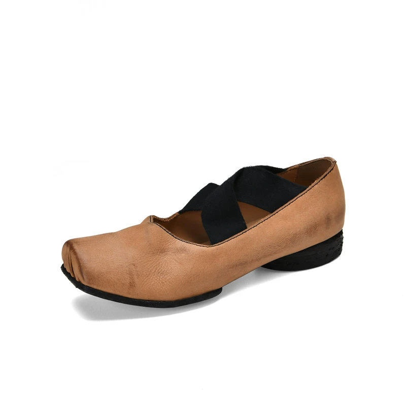 | nameOriginal | Top version dark aged washed genuine leather retro ballet shoes pig nose Mary Jane flat high heel ballet shoes |