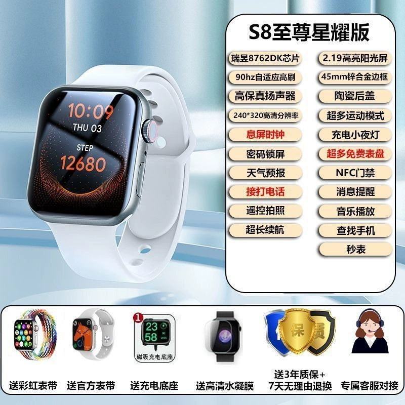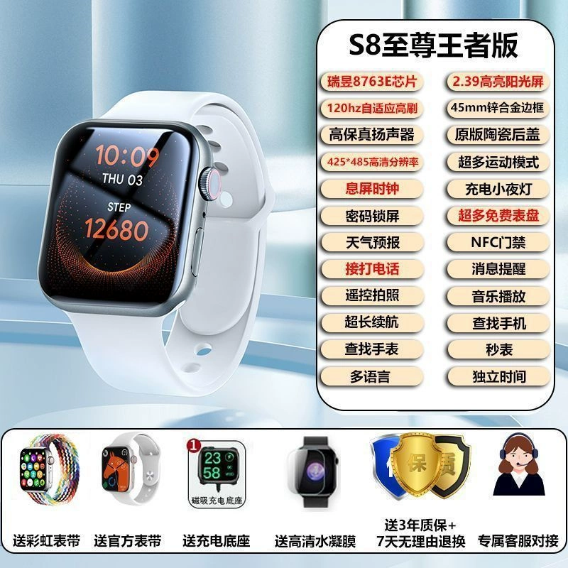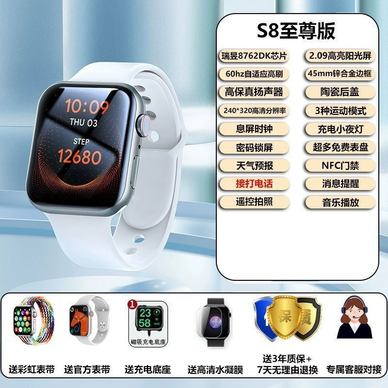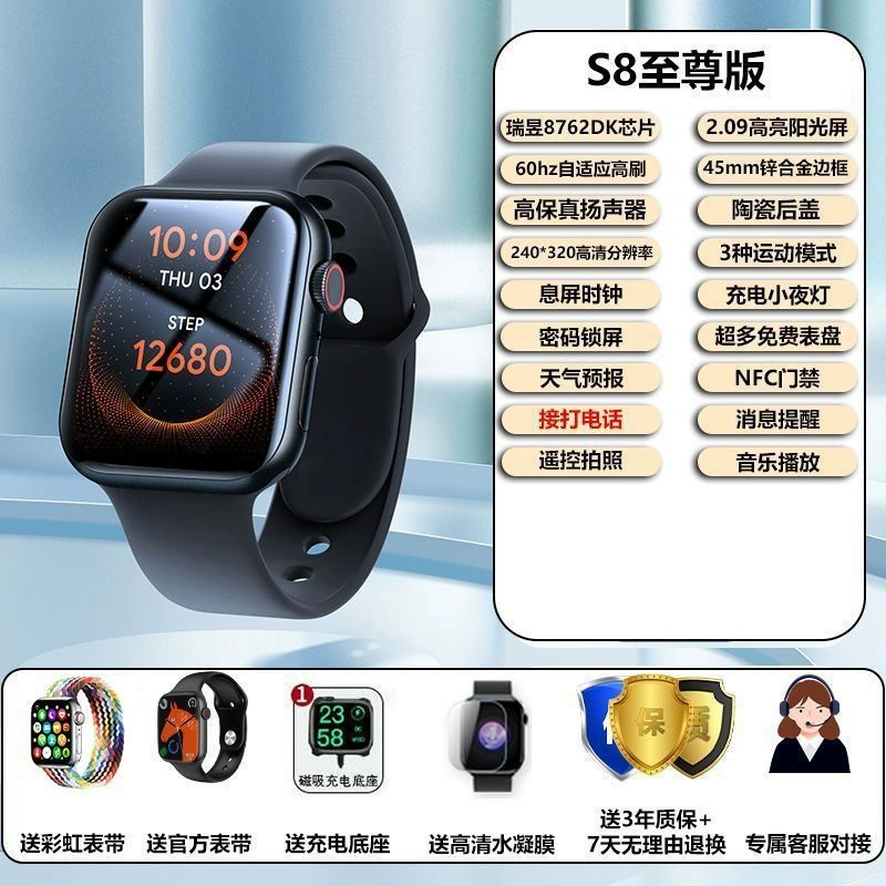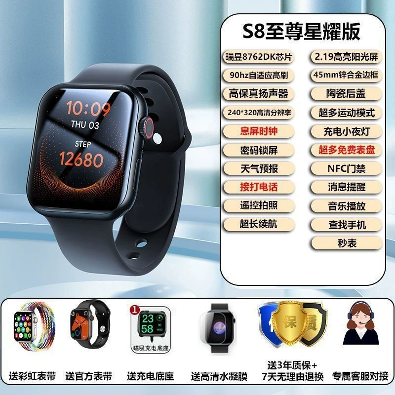 | nameOriginal | Top version of the new s9 smart watch iwatch sports bracelet Huaqiangbei Apple blood pressure heart rate waterproof high-definition call monitoring sleep black technology calling and taking photos Bluetooth music master |