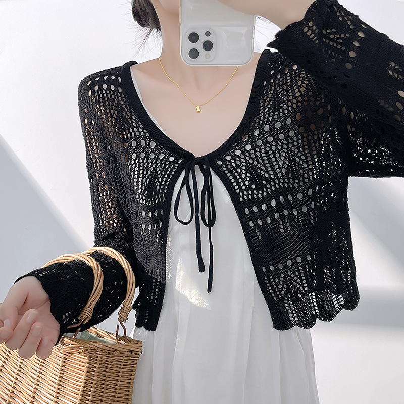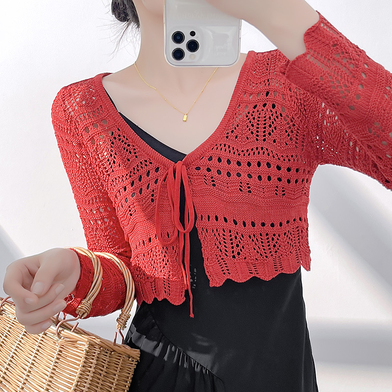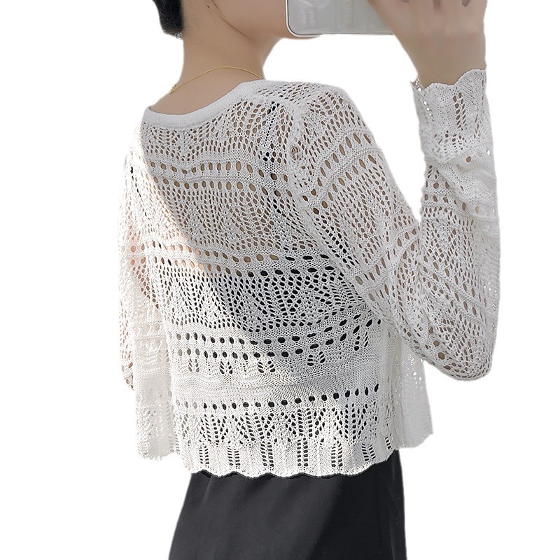 | nameOriginal | Top Women's Sunscreen Knitted Cardigan Women's Hollow Blouse Waistcoat Summer Thin V-neck Drawstring Air-conditioning Shirt Outer Shawl |