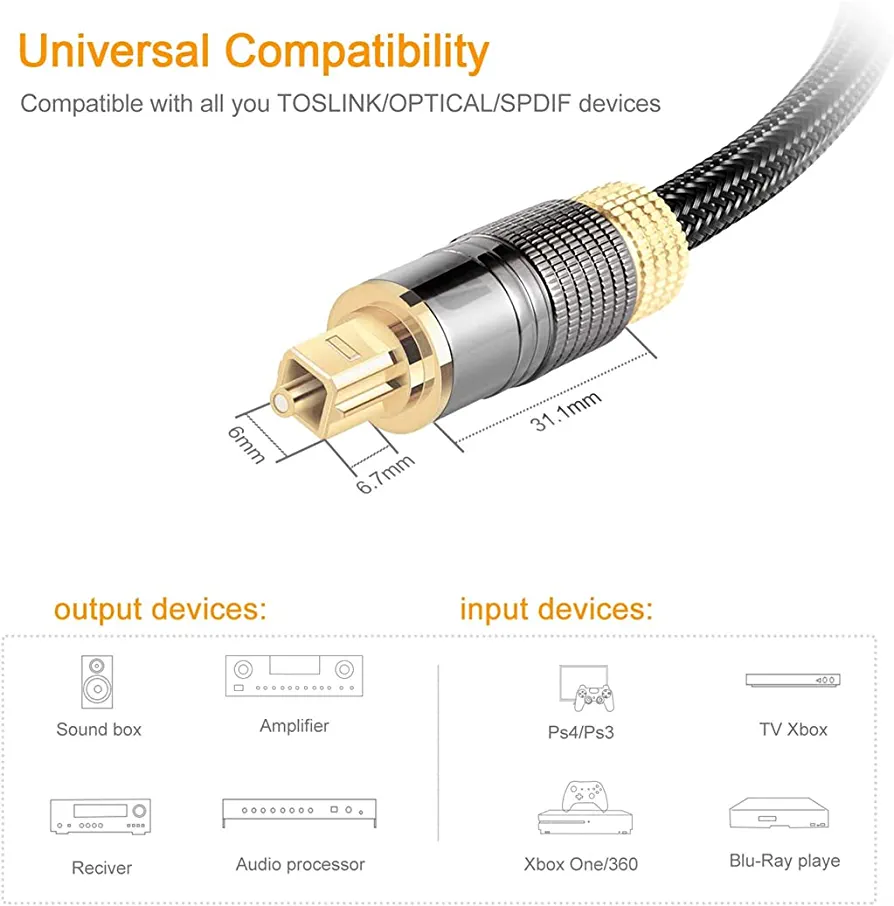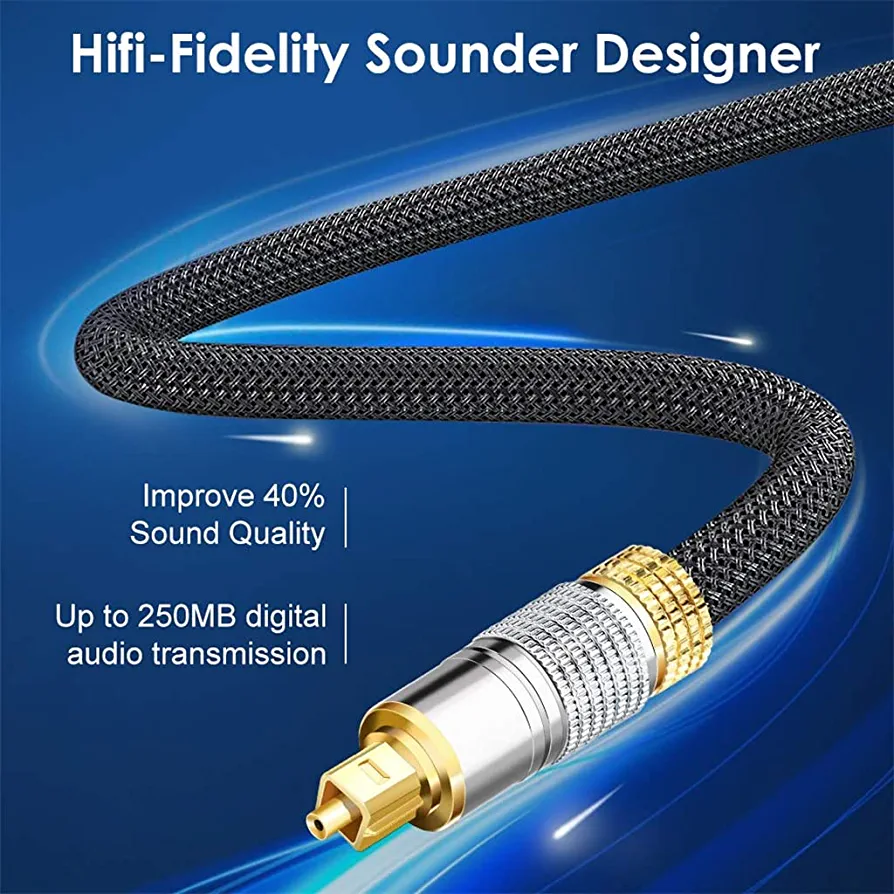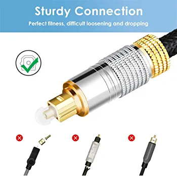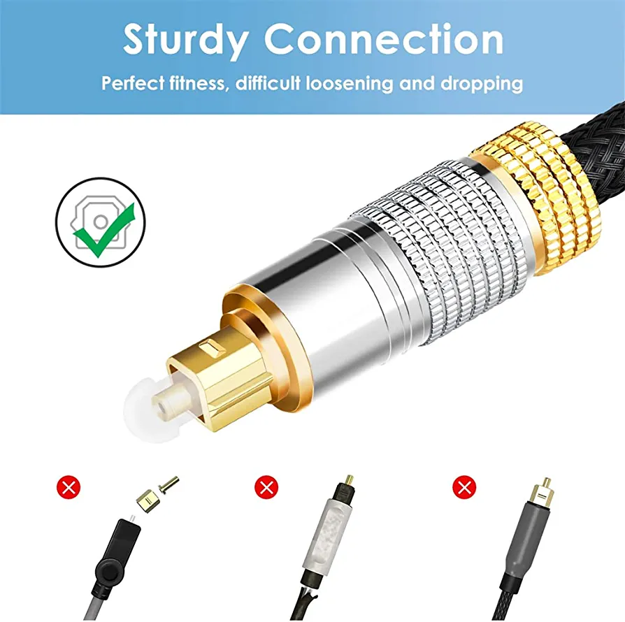 Our optical audio cable boasts a robust construction with gold-plated connectors and buffer tubing that resist corrosion and ensure a distortion-free stream of fiber-optic digital audio. This results in a clearer and purer sound with optimal signal transmission.