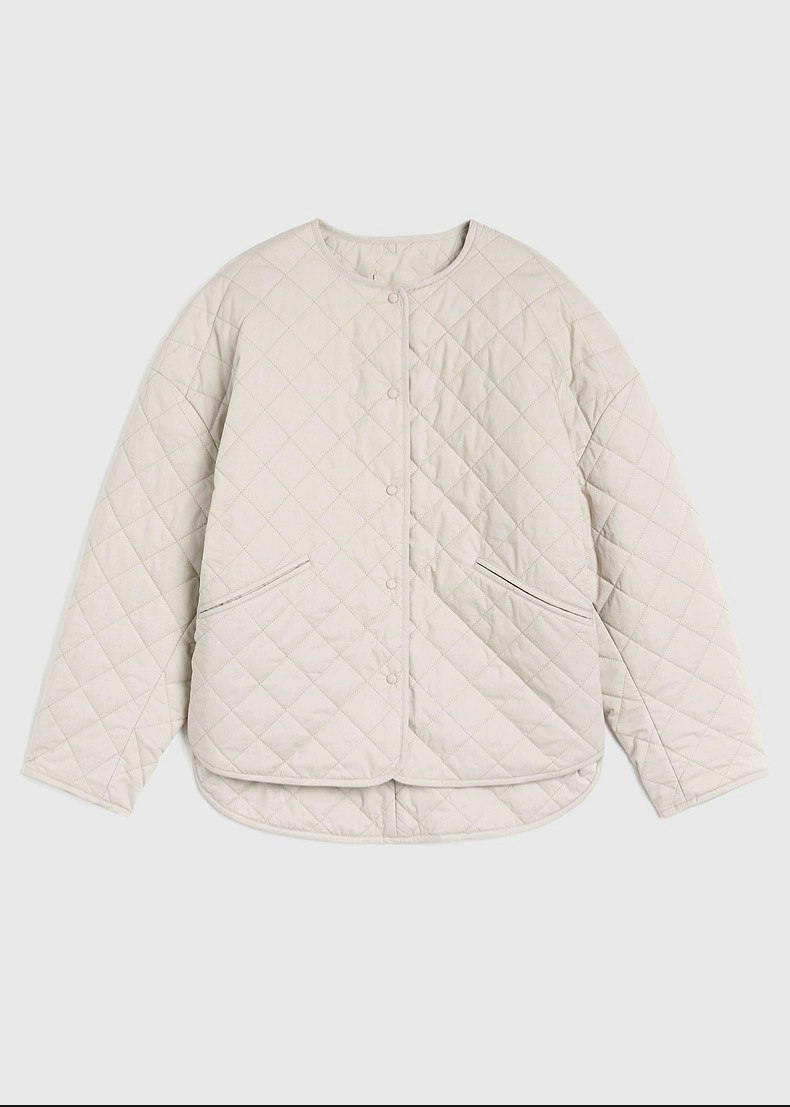 | nameOriginal | Toto* 24 Pebble Gray Spring Thin Diamond Textured Loose Round Neck Quilted Silhouette Jacket for Women |