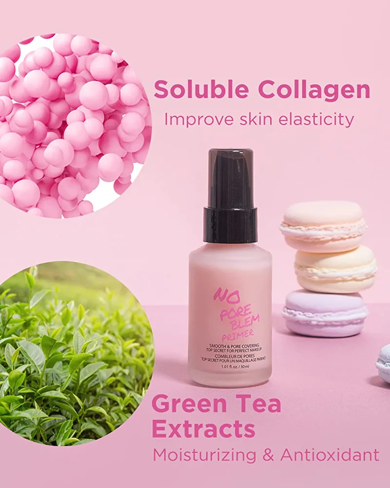 Our primer for face makeup is designed to minimize pores and reduce the appearance of wrinkles and fine lines. With collagen and plant-based ingredients like Green Tea Tree extracts and Soluble Collagen, this hydrating primer will leave your skin looking smooth and healthy. It’s perfect for all skin types and is free of harmful chemicals like paraben, mineral oils, acrylamide, talc, and animal ingredients. Simply pump a small amount and apply a thin layer to your entire face for a velvety finish that will prepare your skin for flawless makeup application.