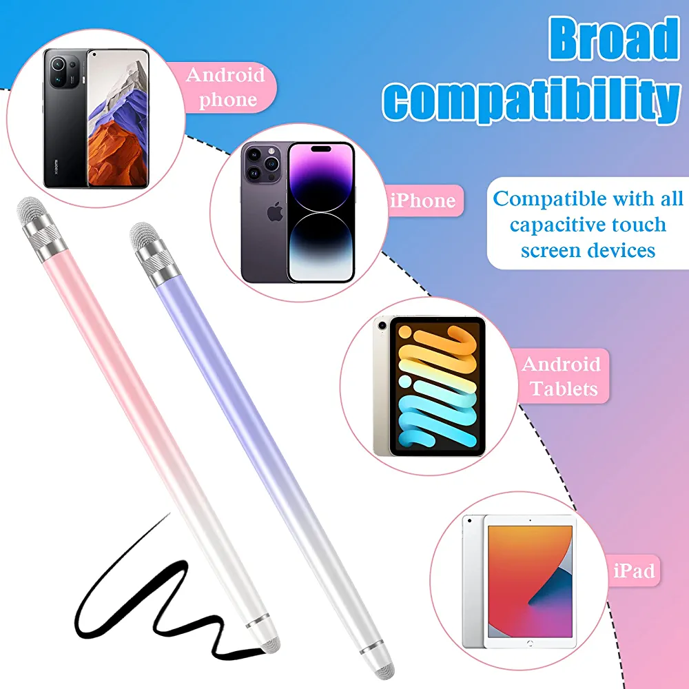 2PCS Stylus Pens for Touch Screens, Stylus Pen for iPhone/iPad/Tablet Android/Microsoft Surface, Compatible with All Touch Screens(White Pink/White Purple)