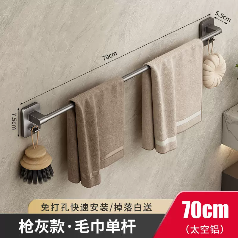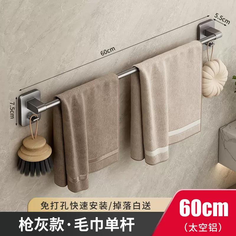 Towel rack bathroom without punching wall hanging rack bathroom towel single rod hook toilet toilet toilet rack