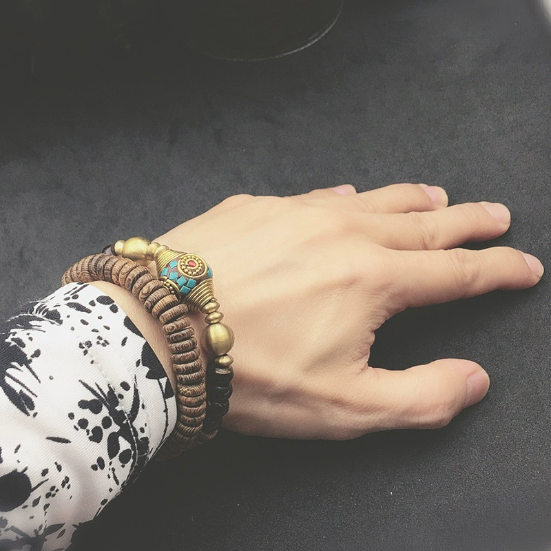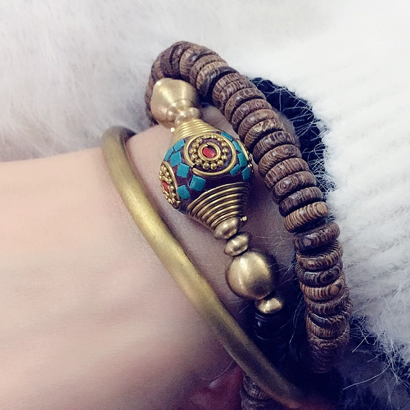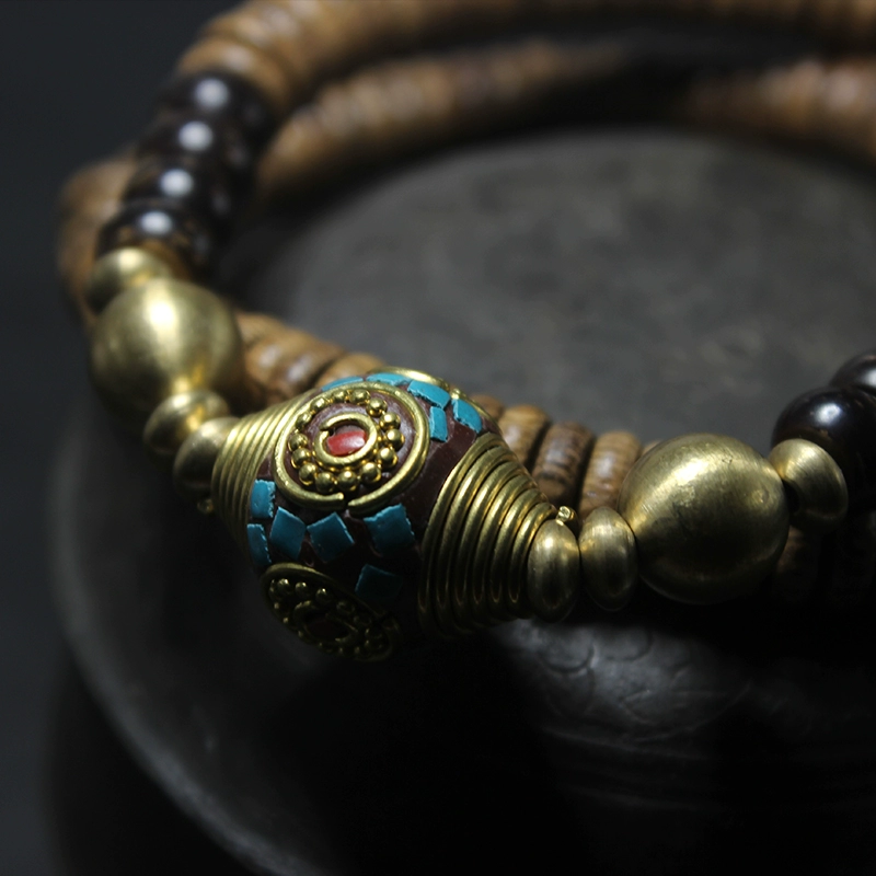 | nameOriginal | "Tower of Wishes" Nepalese jewelry handmade brass beads and coconut shell bracelets for men, chicken wing wood energy bracelets for girls |