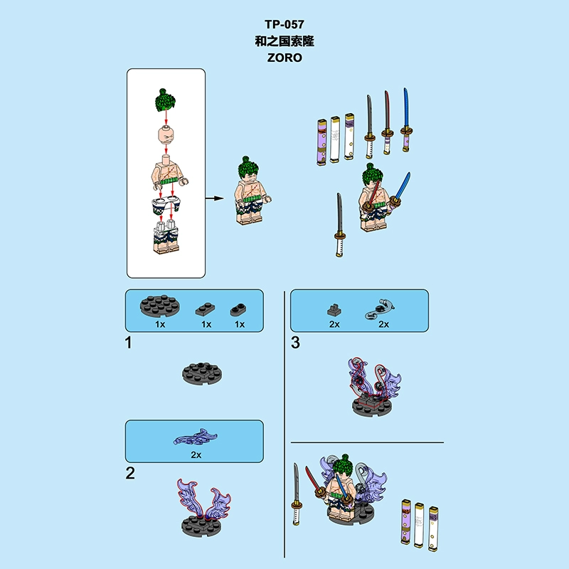 | nameOriginal | TP1007 Pirate Sanji Luffy Zoro Kaido Jimbei third-party building block minifigure assembled children's toy |