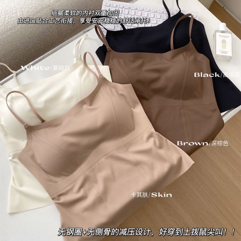 Traceless Live One-piece Cup Top with Chest Pad Women's Anti-walking Camisole Vest Outer Wear Slimming Beautiful Back Base