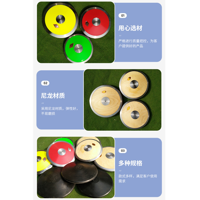 Track and Field Sports Competition Training Nylon Discus Wooden Solid Plastic Cake Round Discus for Primary and Secondary School Students Examination