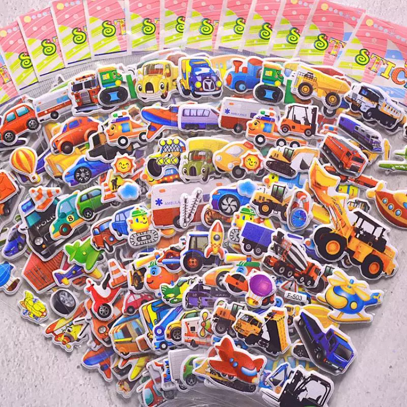 Transportation engineering car cartoon sticker children’s post 3D three -dimensional bubble kindergarten early education reward paste