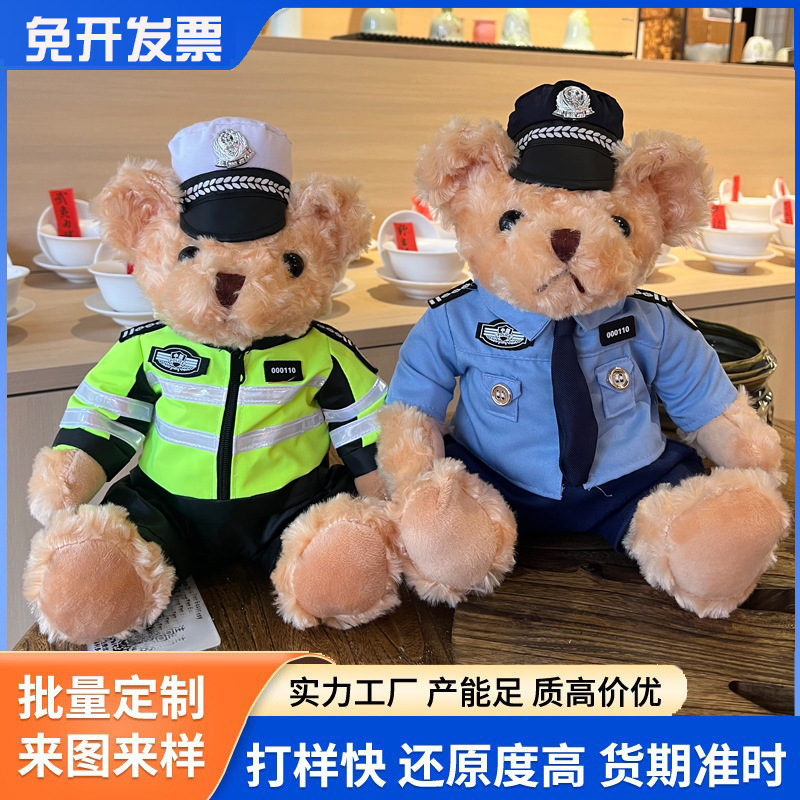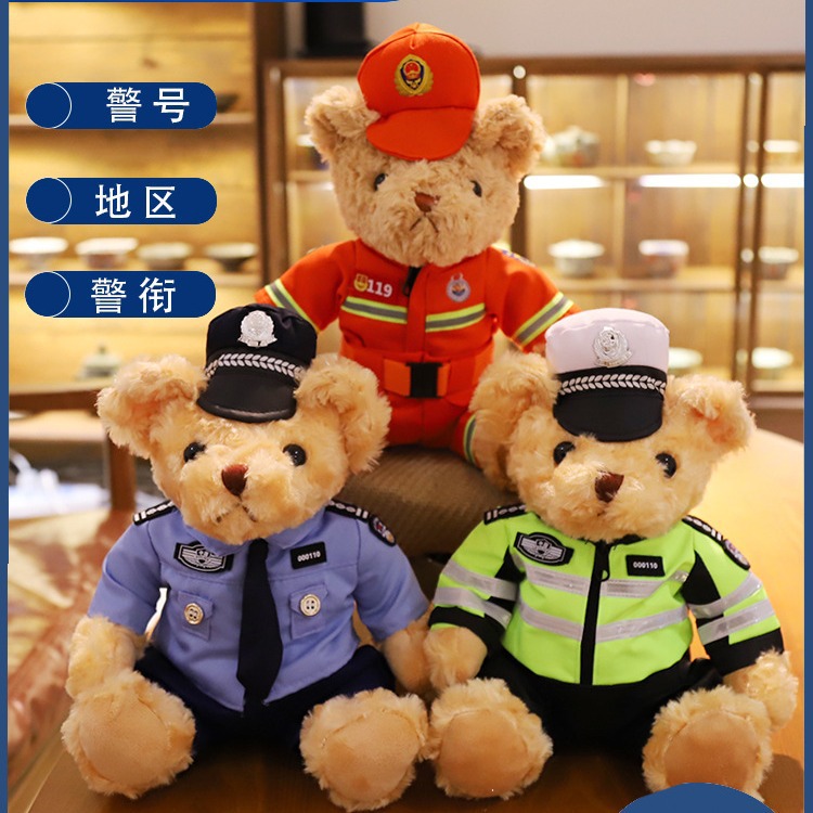 Traffic Police Bear in Uniform Police Bear Fireman Bear Doll Internet Red Same Doll Plush Toy Gift for Women