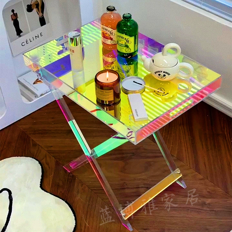 Transparent acrylic coffee table bay window sill side table tatami small tea table simple creative folding portable rainbow table