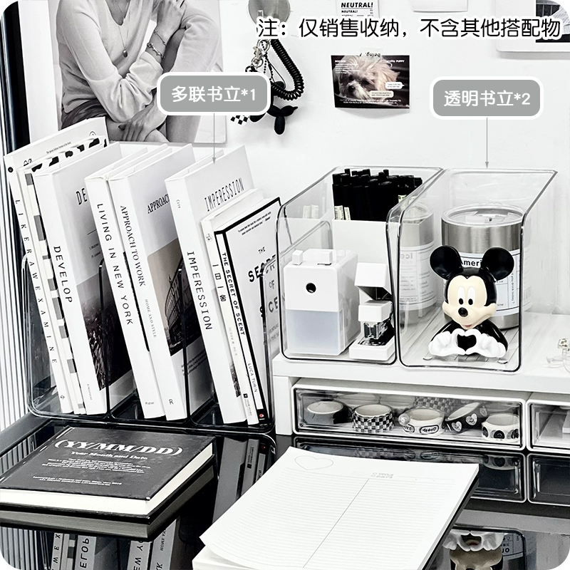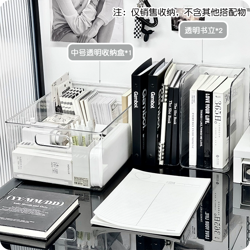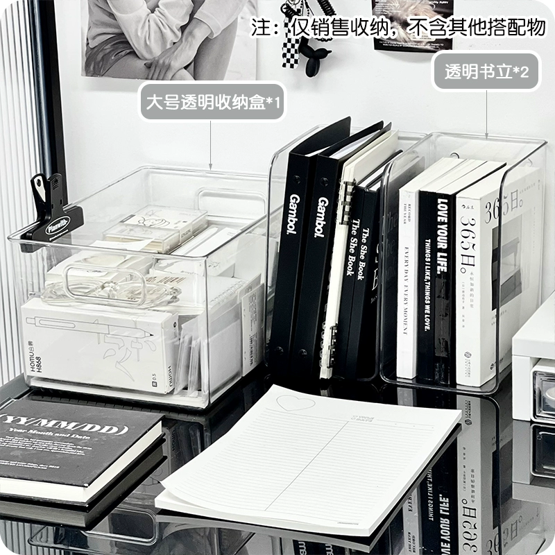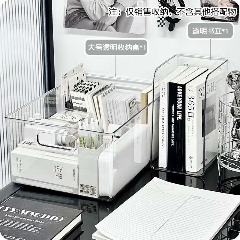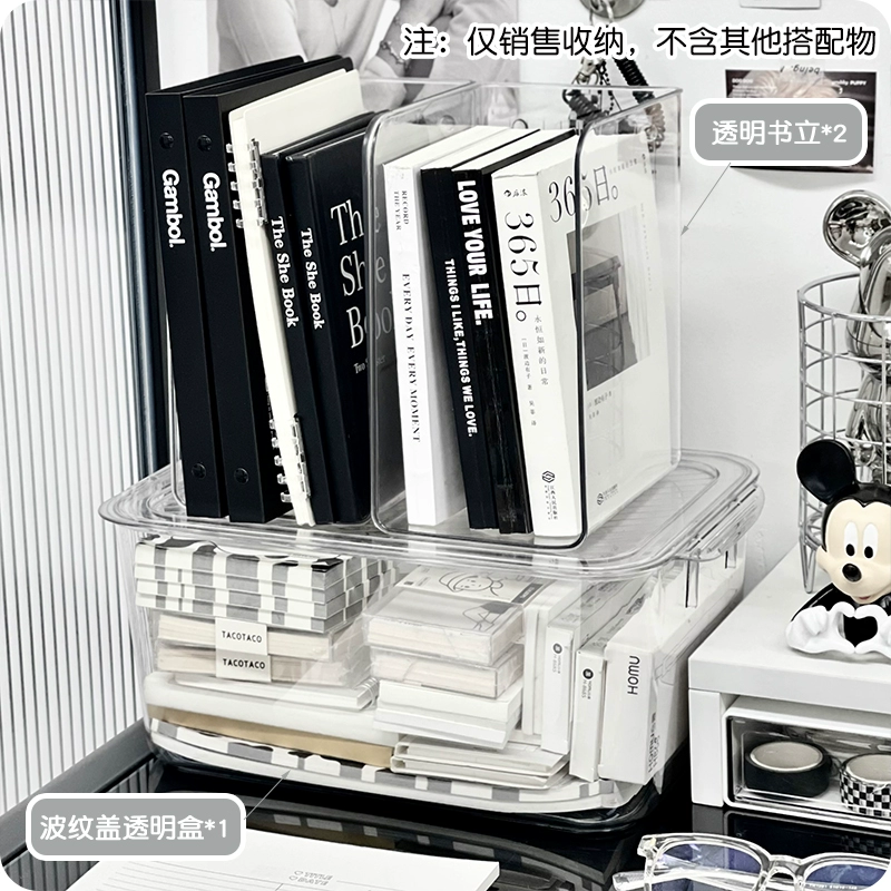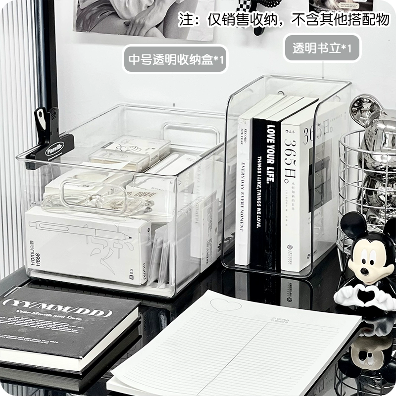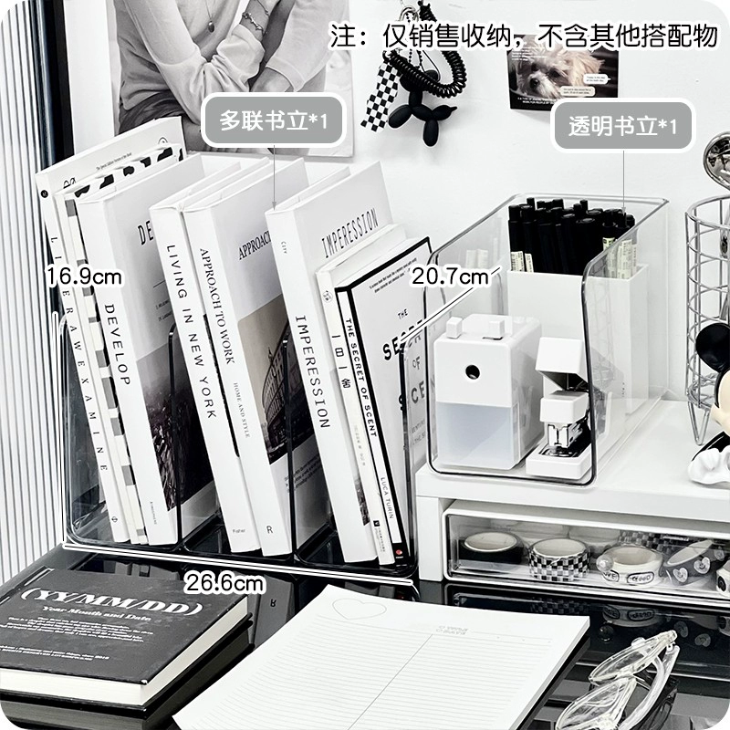 Transparent bookend book storage box bookstand desk student office transparent bookshelf desk organization storage rack