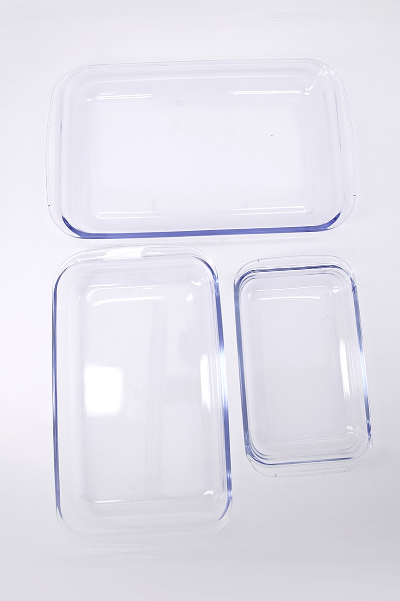 | nameOriginal | 3,Piece Borosilicate Rectangular Glass Baking Tray, Transparent |