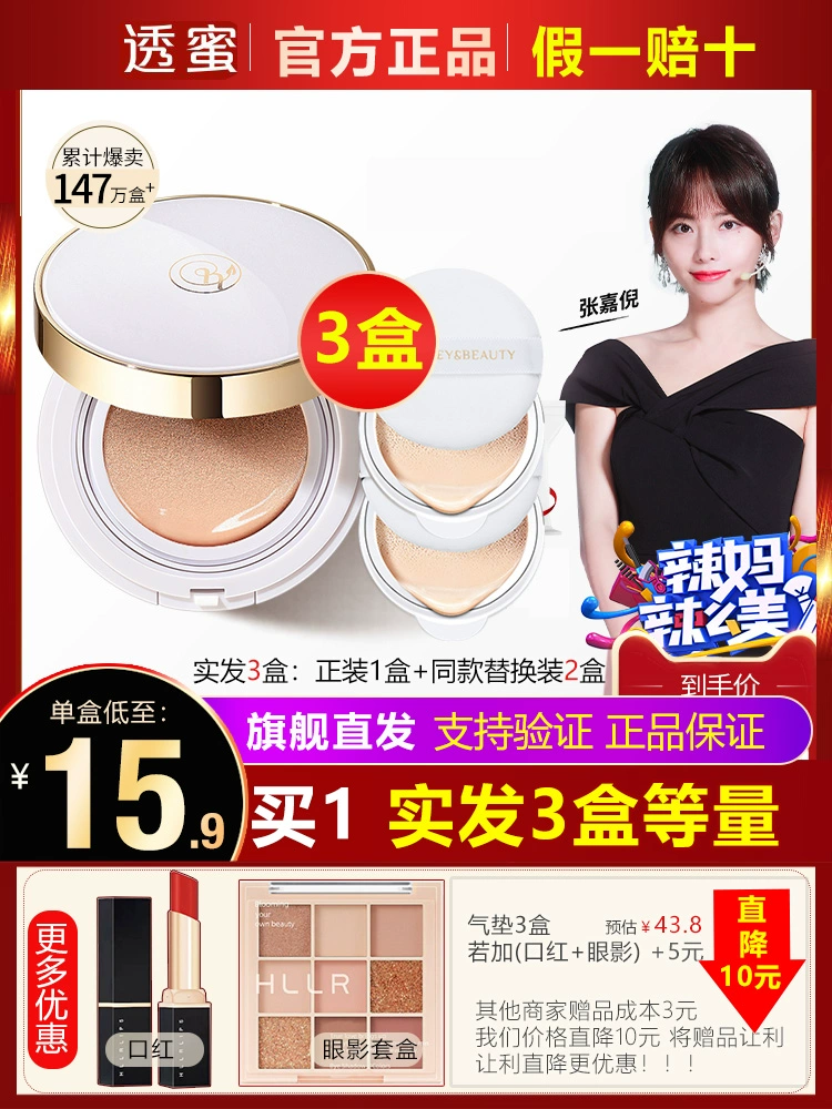 Transparent honey air cushion BB cream isolation long-lasting concealer puff moisturizing oil control non-removing makeup transparent liquid foundation for men and women matte