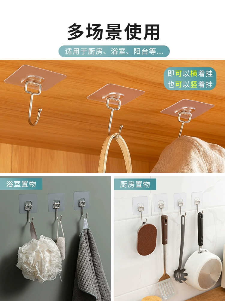 | nameOriginal | Transparent hook, strong load-bearing, no need to punch holes, traceless adhesive, stick to kitchen wall nail, stainless steel hook on wall |