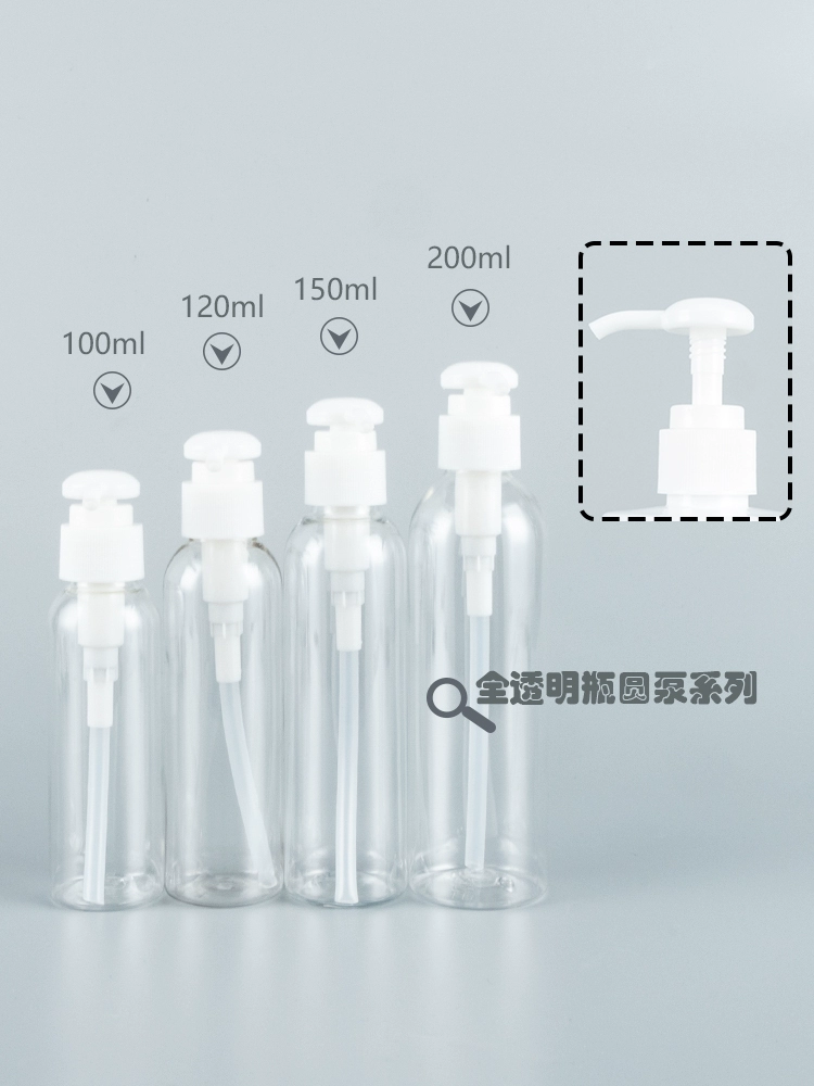 | nameOriginal | Transparent hydrosol dispensing small round head push lotion bottle |