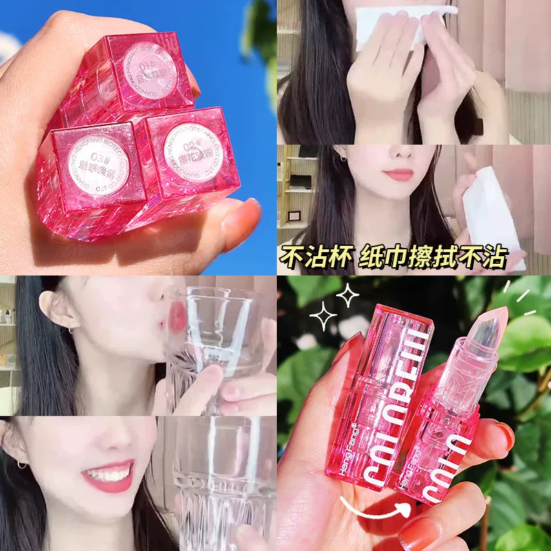 Transparent jelly color-changing lip balm, moisturizing and moisturizing, student girl light makeup, waterproof, non-removing makeup, non-stick cup lipstick, temperature-changing