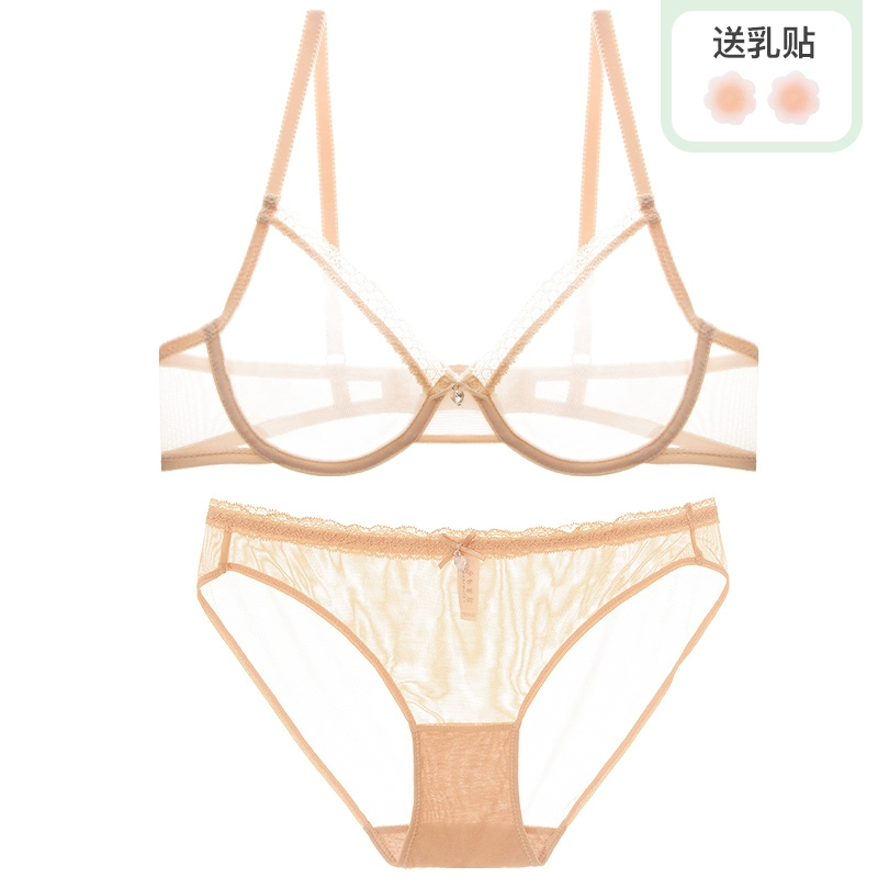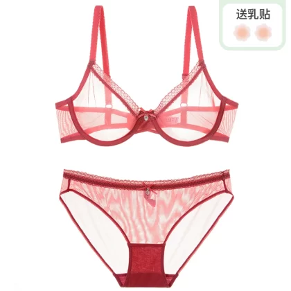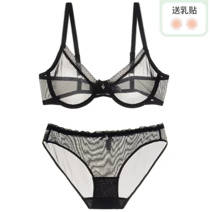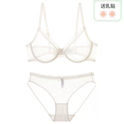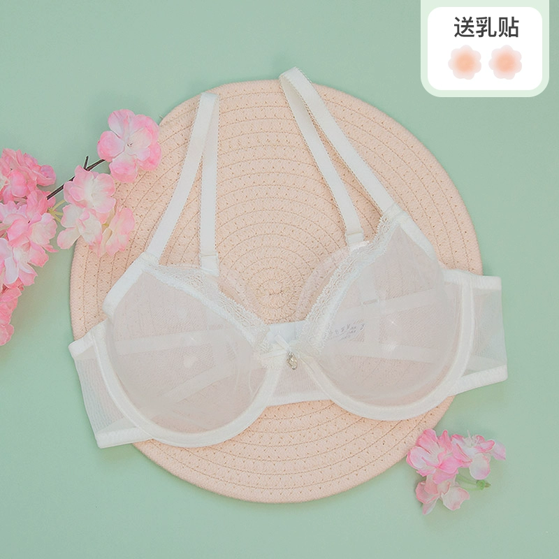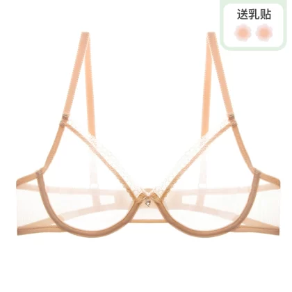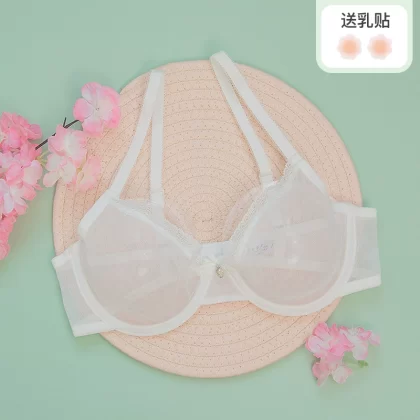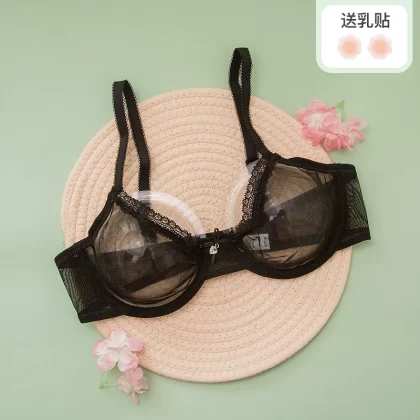 Transparent mesh sexy female underwear super thin bras gathered lace bra
