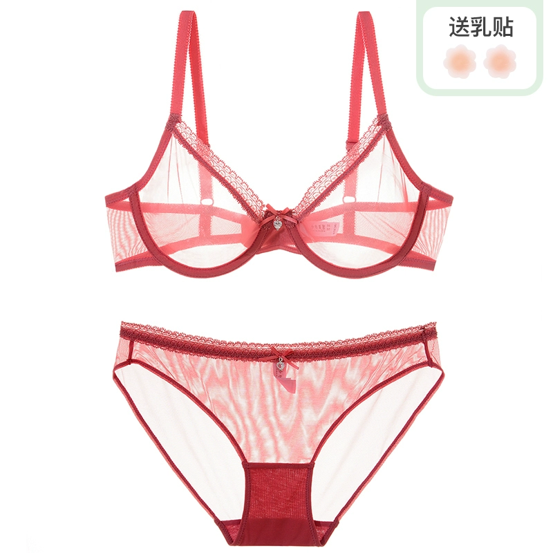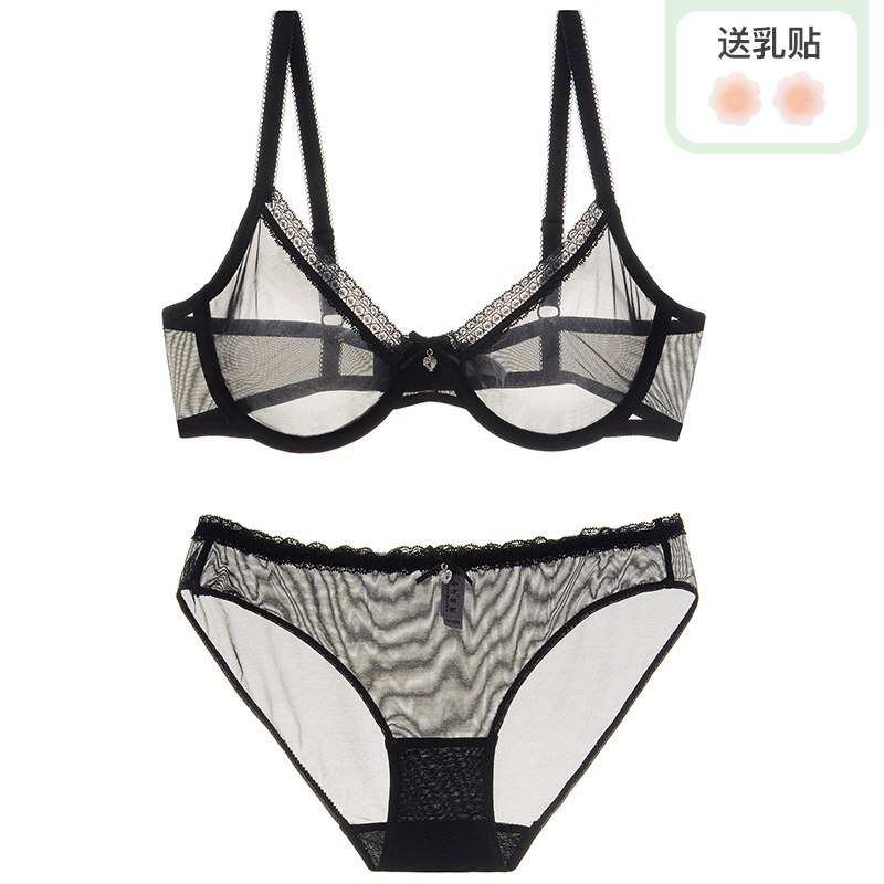 Transparent mesh sexy women's underwear ultra-thin push-up lace bra exposed sexy set see-through mood
