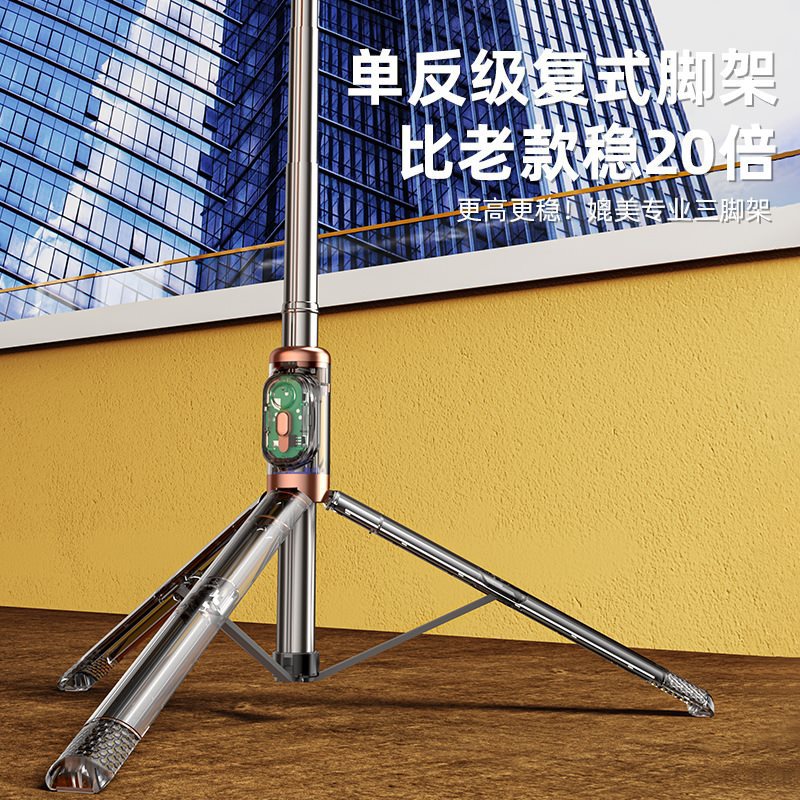 Transparent mobile phone Bluetooth selfie stick double fill light handheld stabilizer floor telescopic rod live broadcast bracket tripod