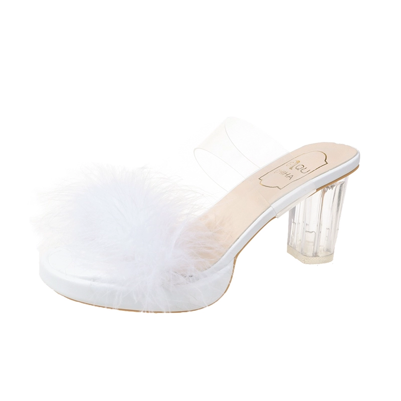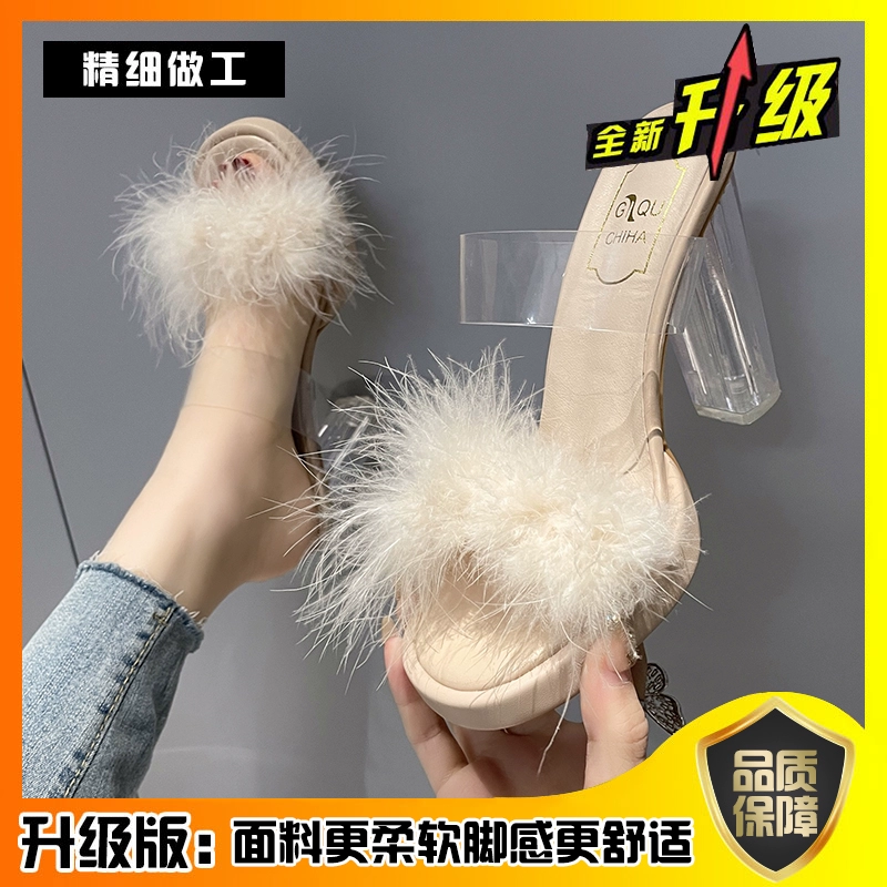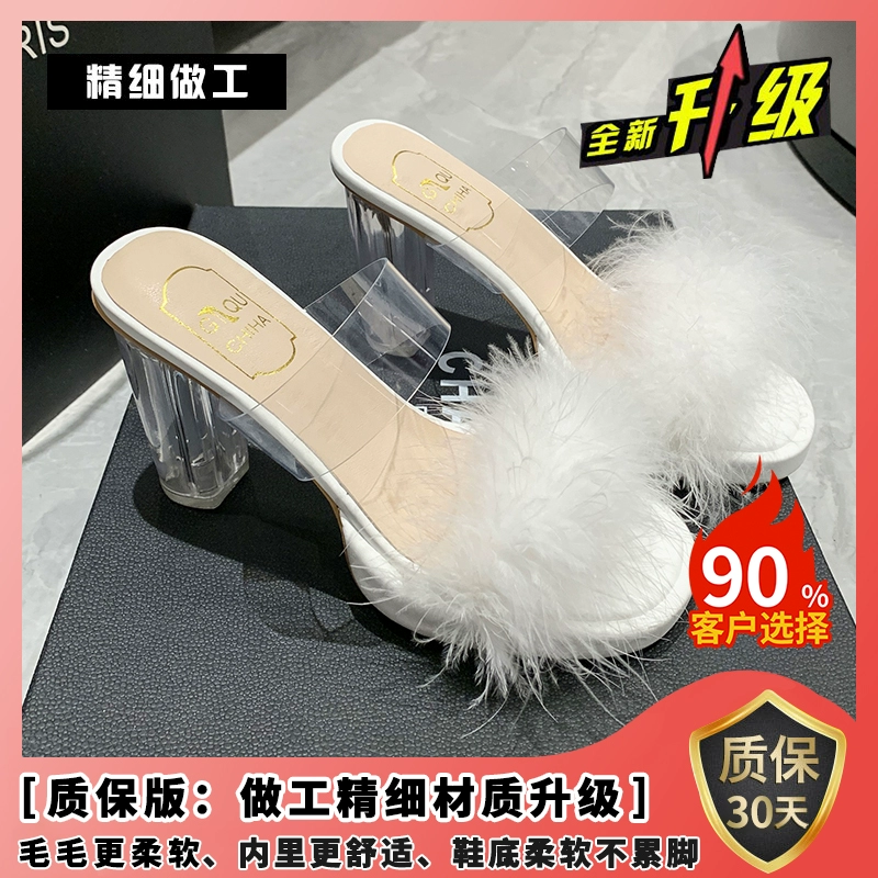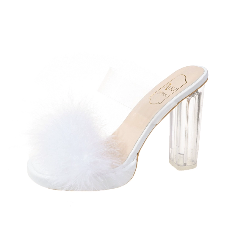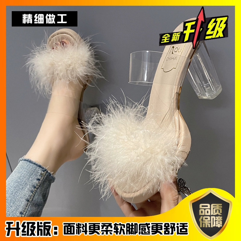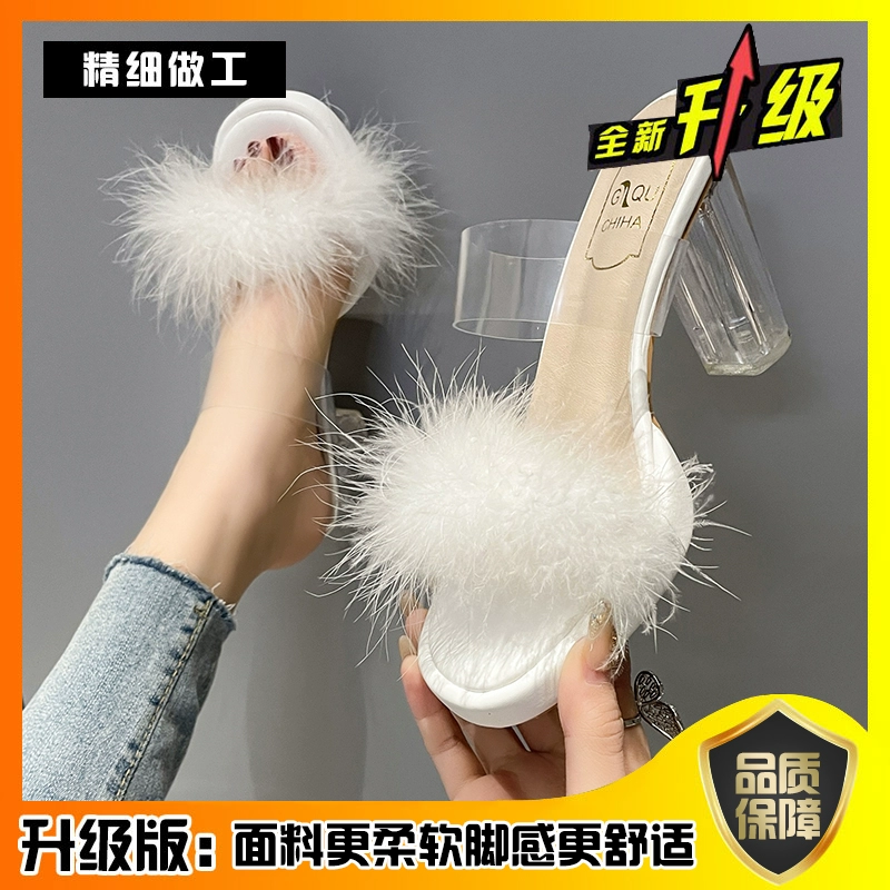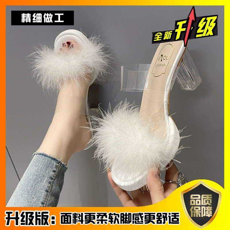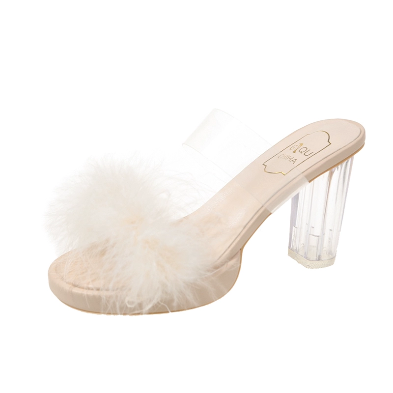 | nameOriginal | Transparent one-piece crystal thick high heel furry slippers |