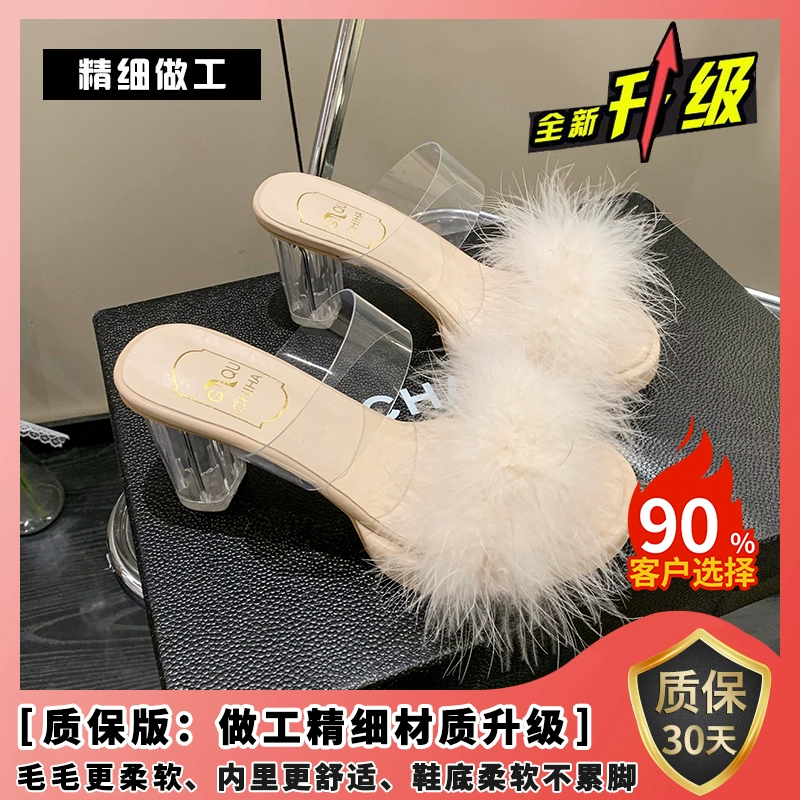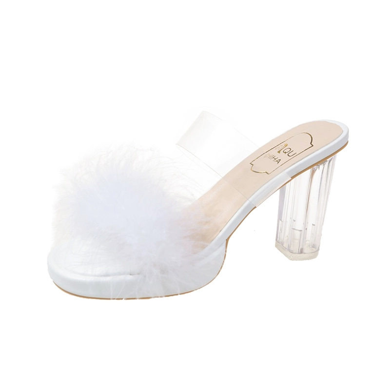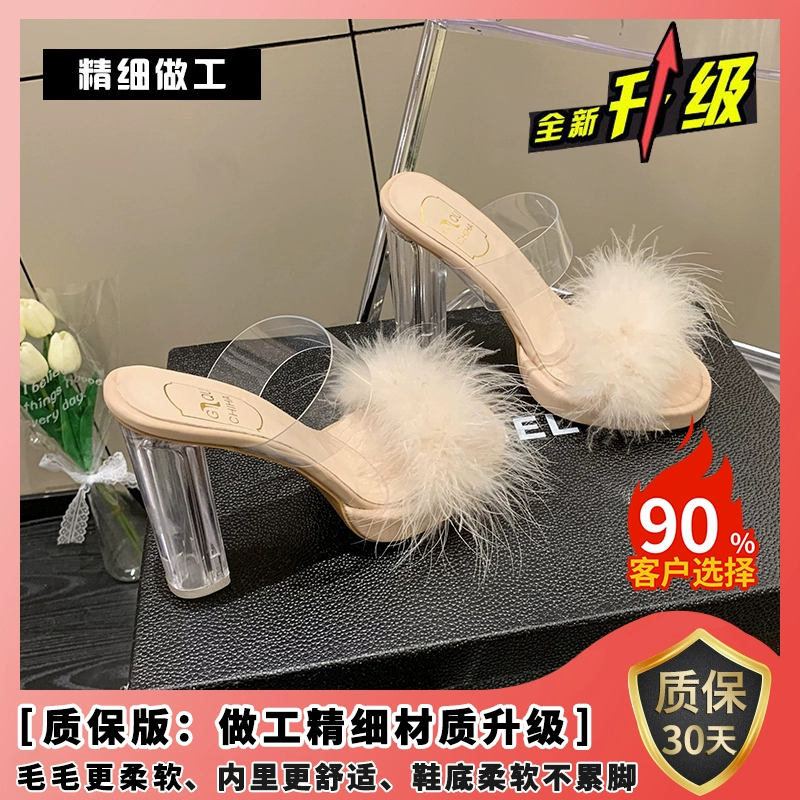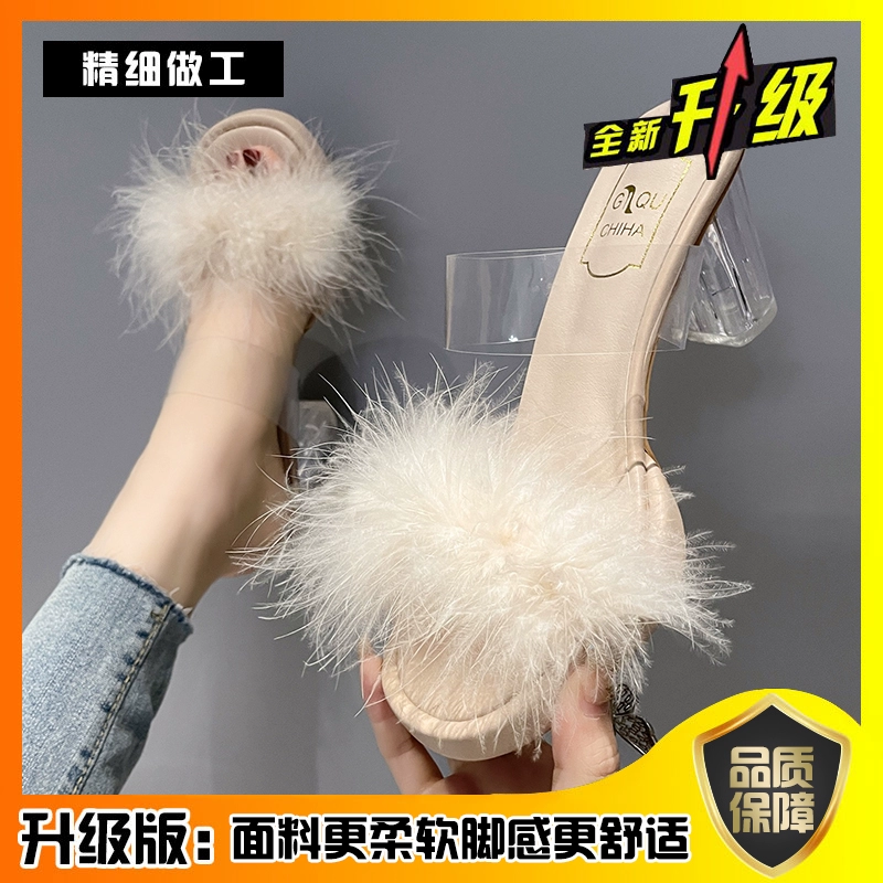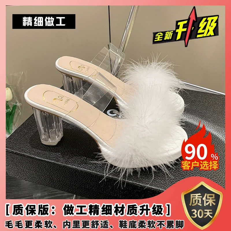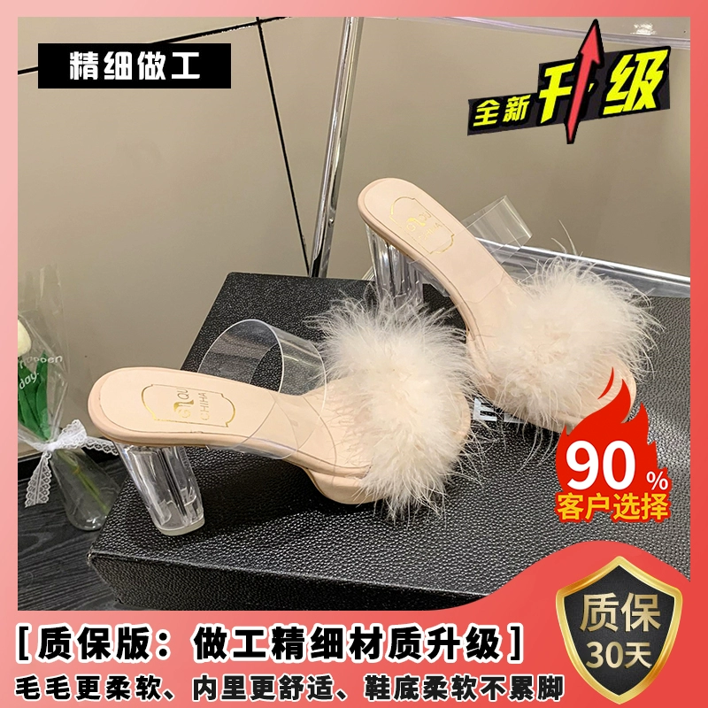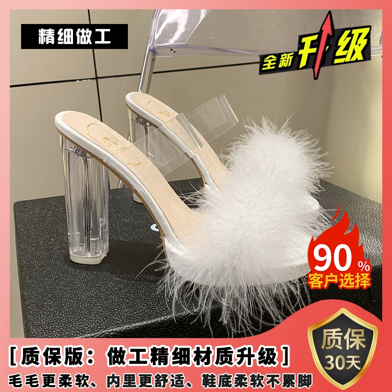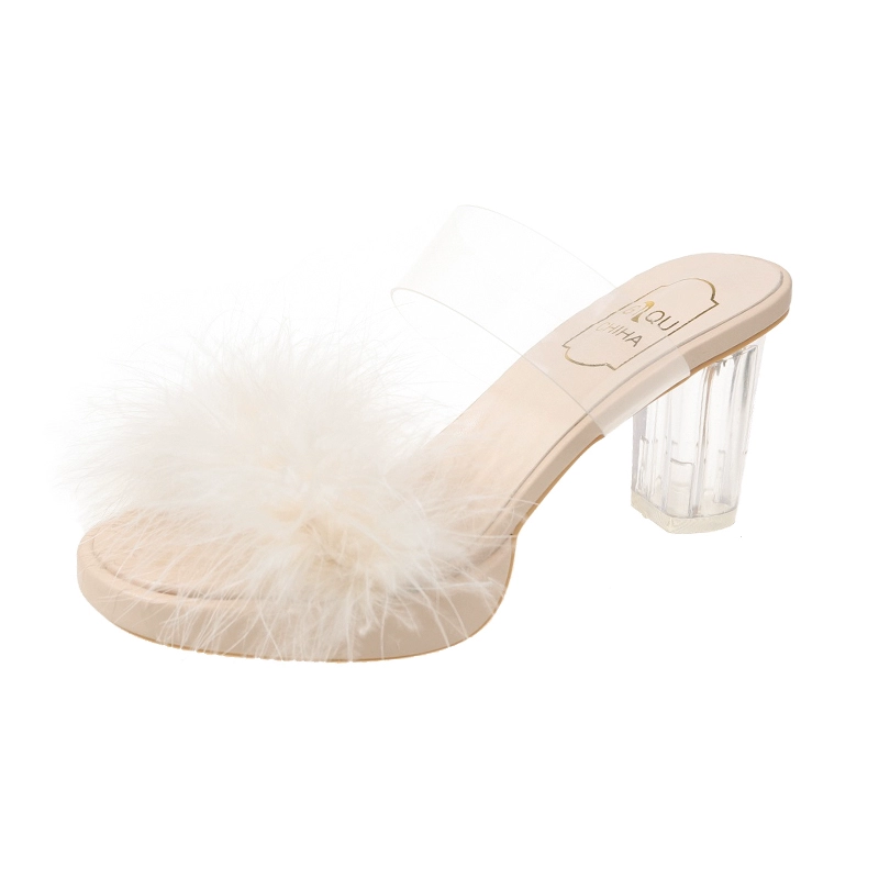 | nameOriginal | Transparent one-piece crystal thick high heel furry slippers |