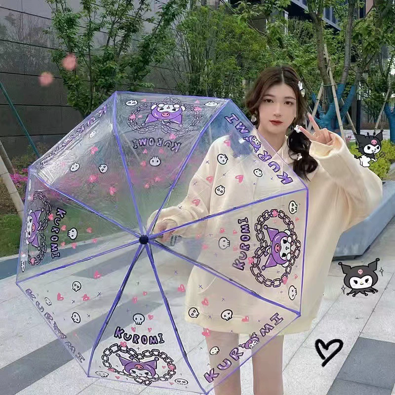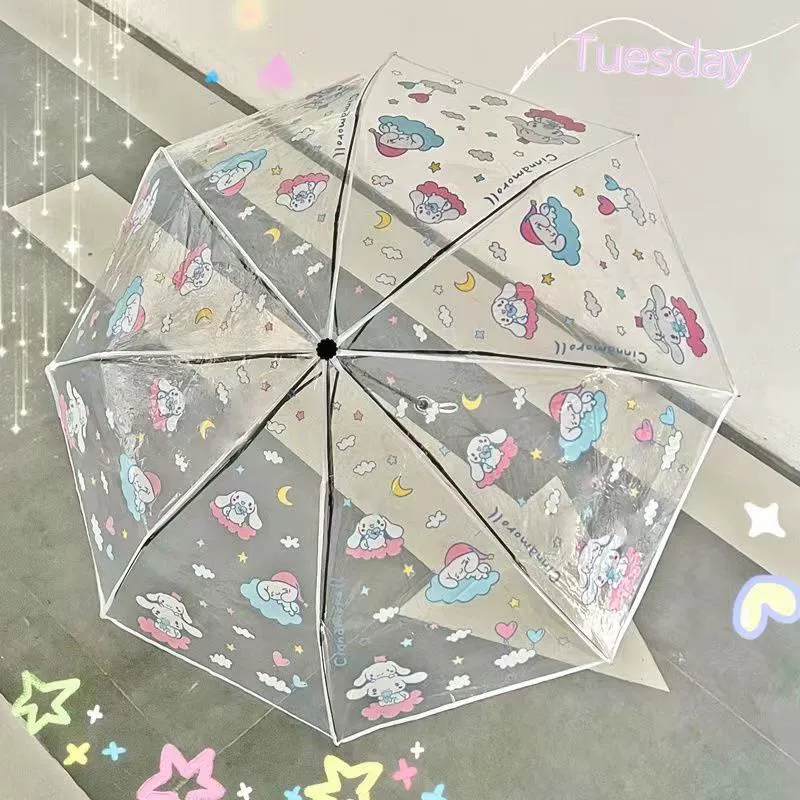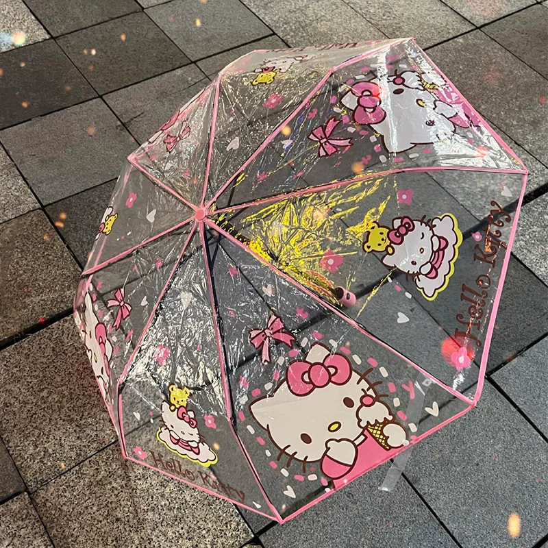 Transparent Portable Folding Cartoon Sanrio Umbrella for Girls