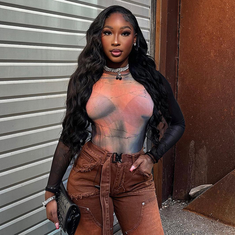 | nameOriginal | Transparent Sexy Mesh European and American Women's Cross-border Autumn New Printed Round Neck Long-sleeved Slim-fit jumpsuit |
