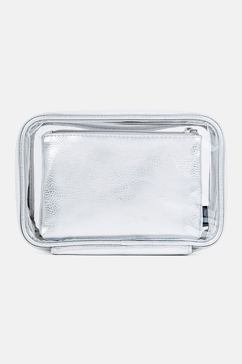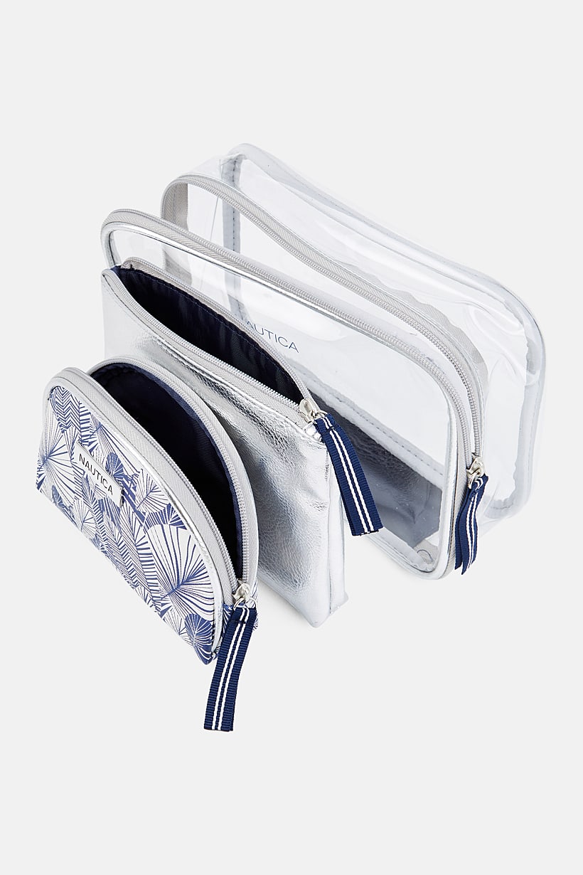 Transparent/Silver Combo Women’s 3-Piece Cosmetic Bag Set.