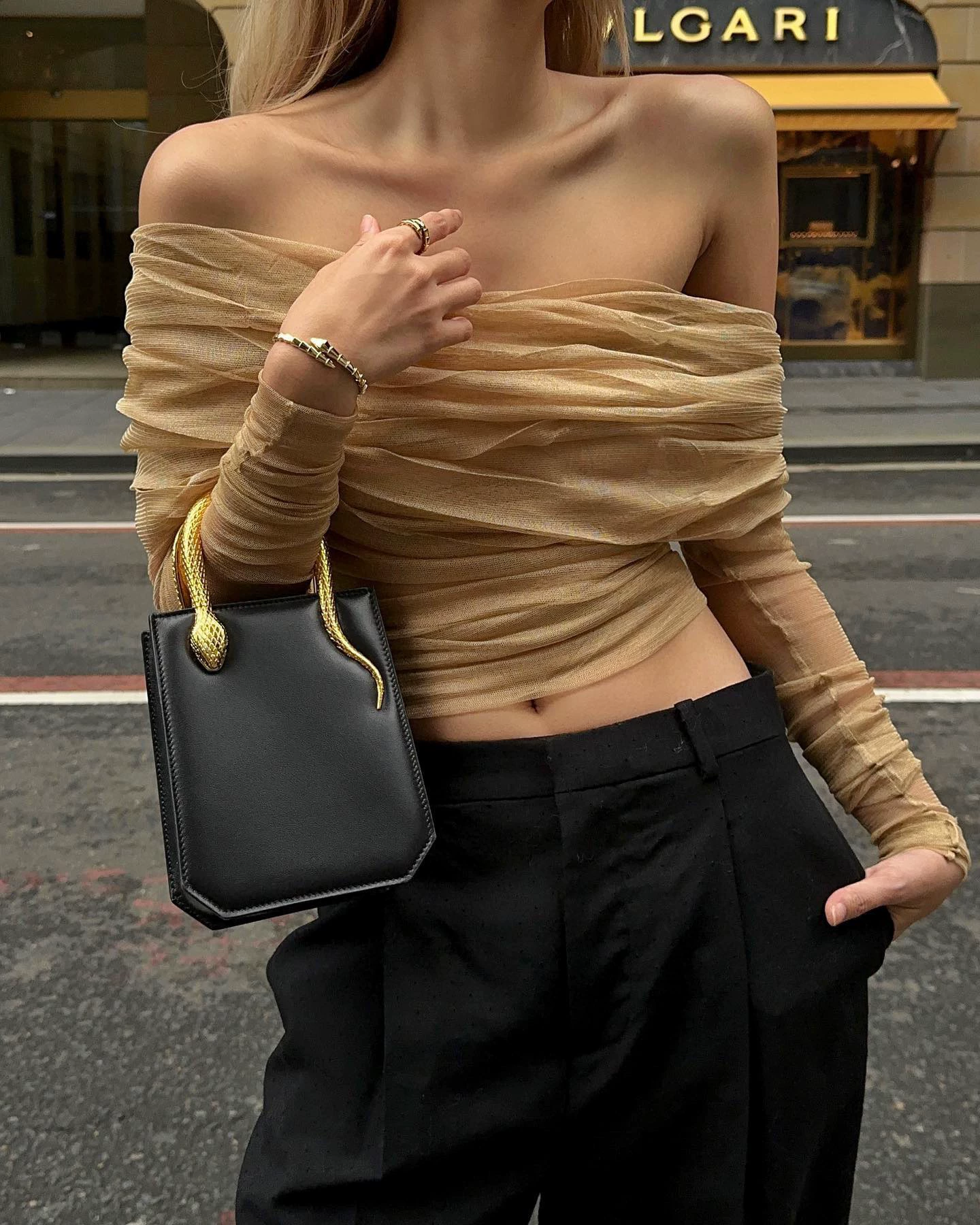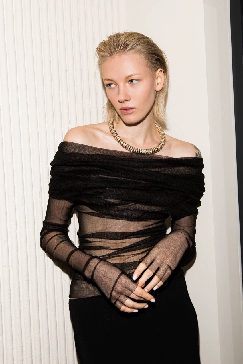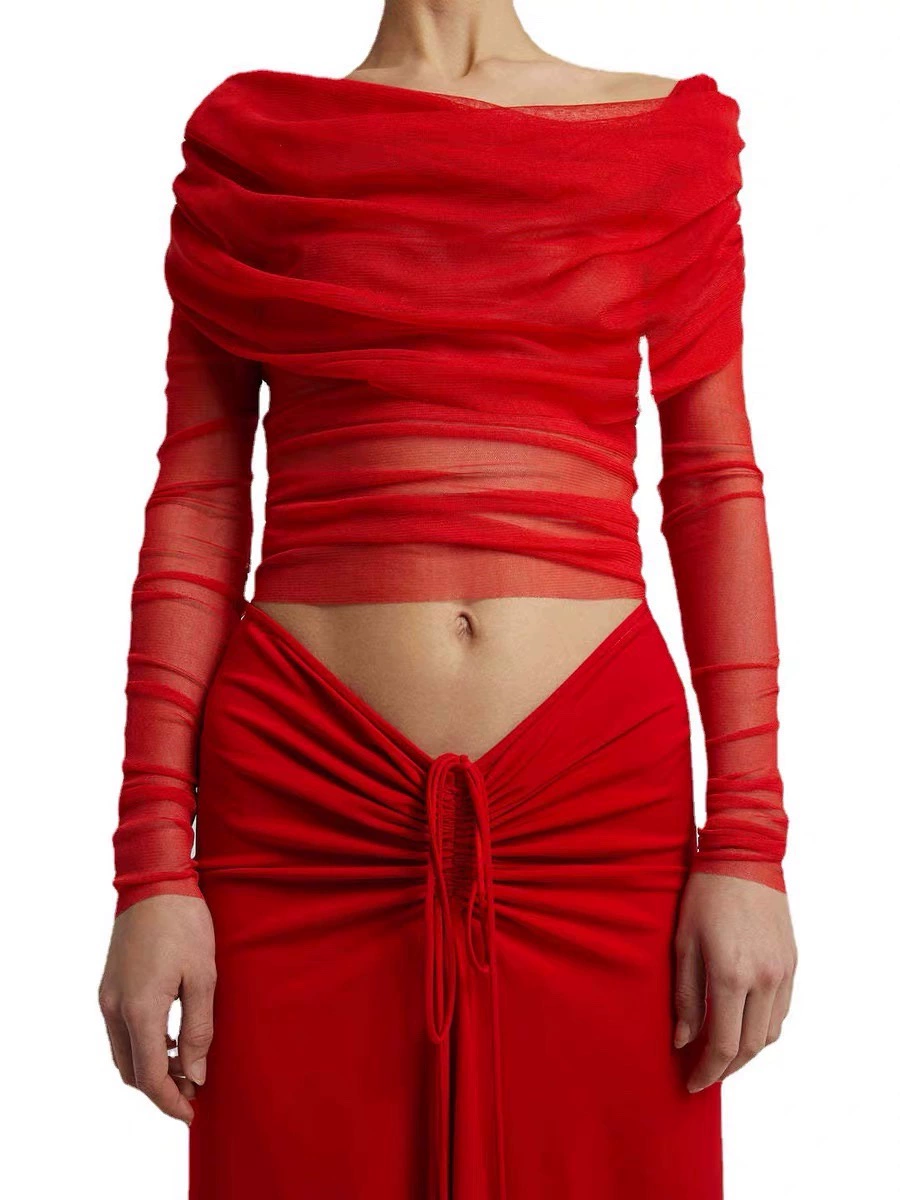 Transparent stacked long-sleeved slim fit T-shirt top in mesh