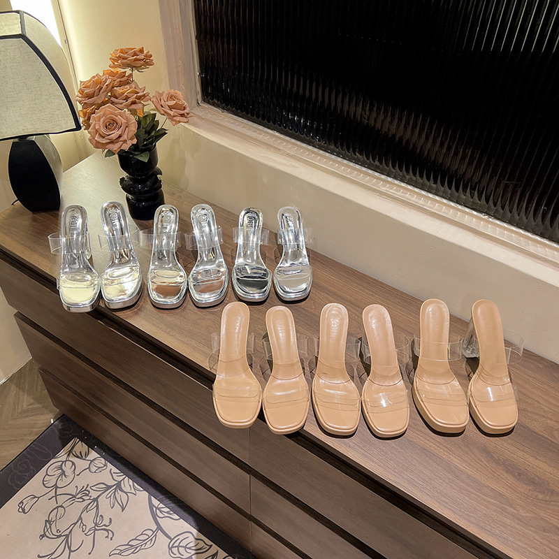 Transparent summer waterproof platform with versatile high heels