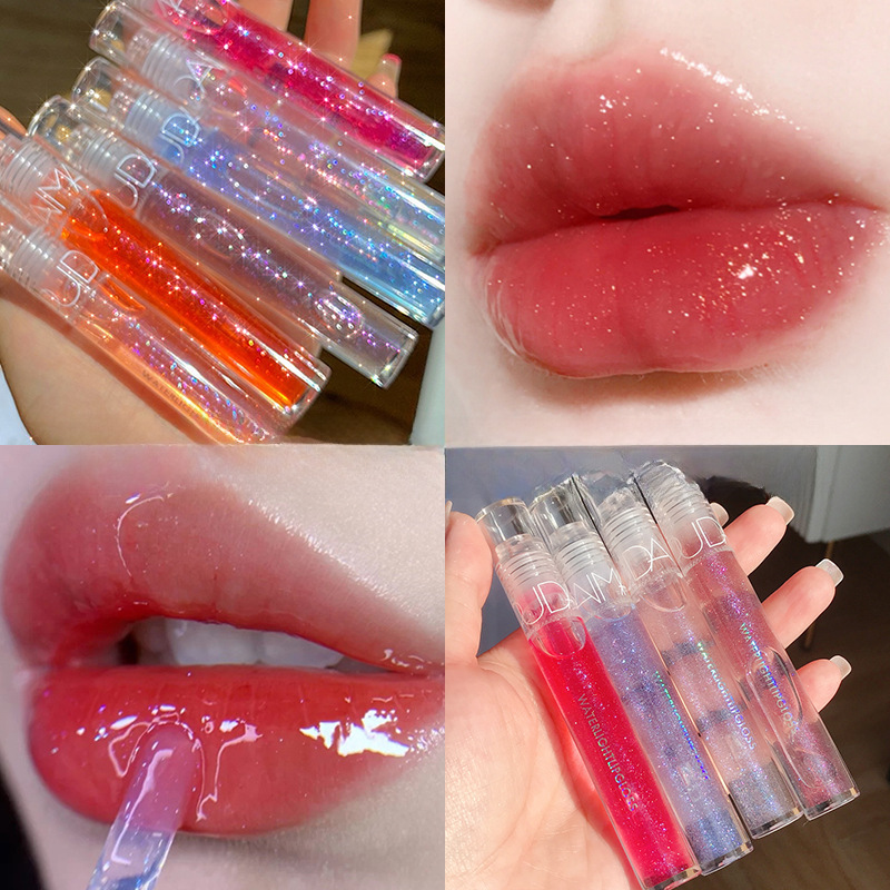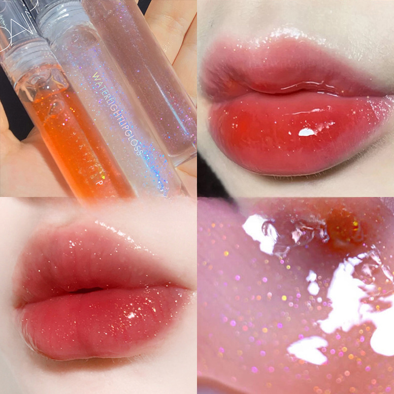 | nameOriginal | Transparent water glass lip gloss stacked Pearl tape flash mirror lip glaze cheap water film moisturizing toot lips |