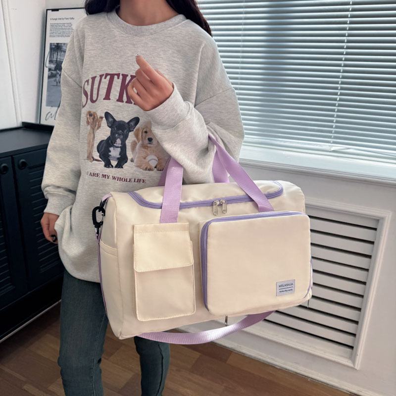 | nameOriginal | Travel Bag Contrast Color Foldable Fitness Bag Short-distance Boarding Accommodation Storage Bag Dry and Wet Dual-purpose Simple Large Shoulder Bag |