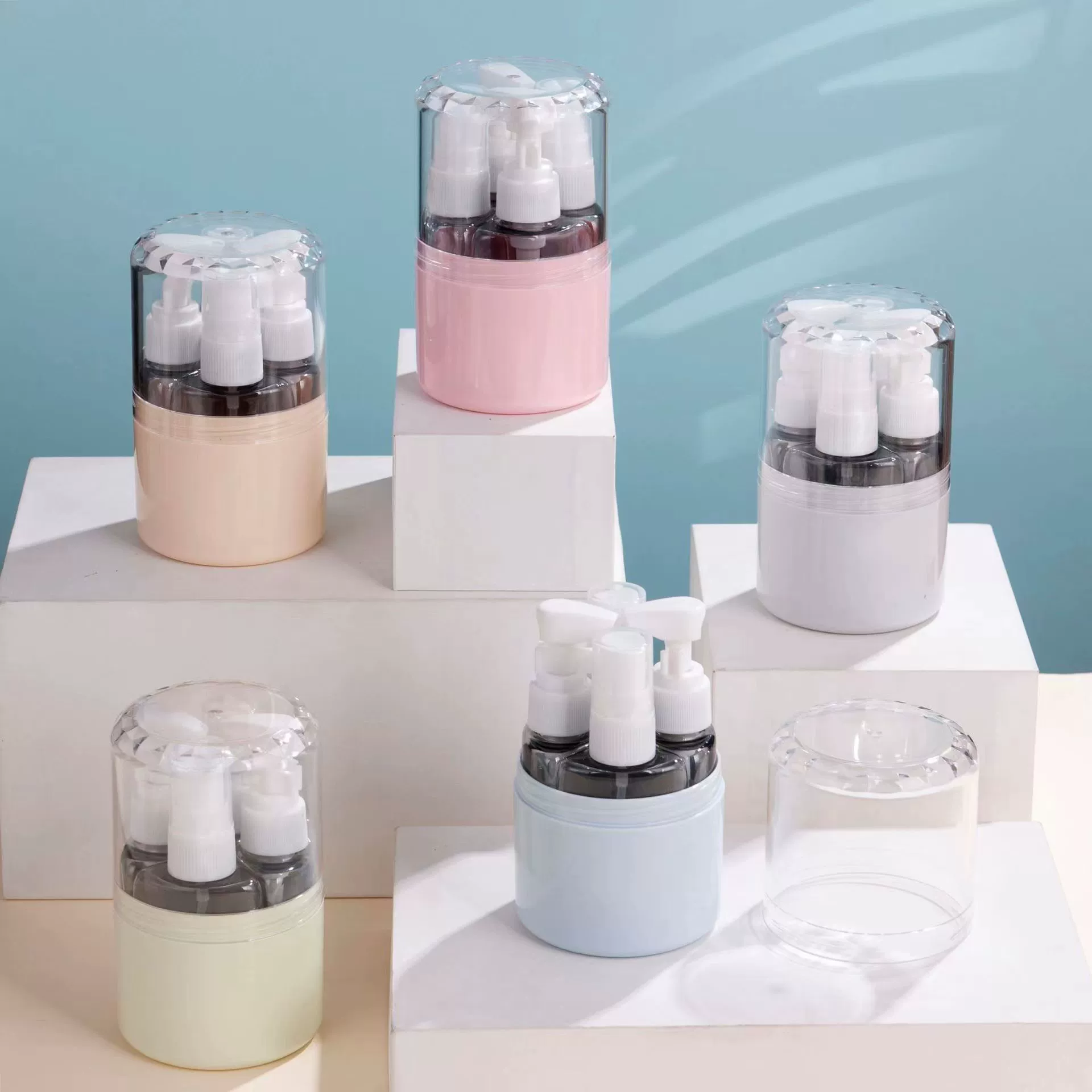 Travel cosmetics dispensing bottle four-in-one set shampoo shower gel spray lotion bottle combination portable storage