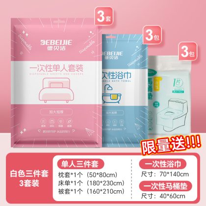 | nameOriginal | Travel Disposable Bed Sheet Quilt Cover Pillowcase Hotel Four-piece Travel Quilt Cover Dirty Portable Train Sleeper |