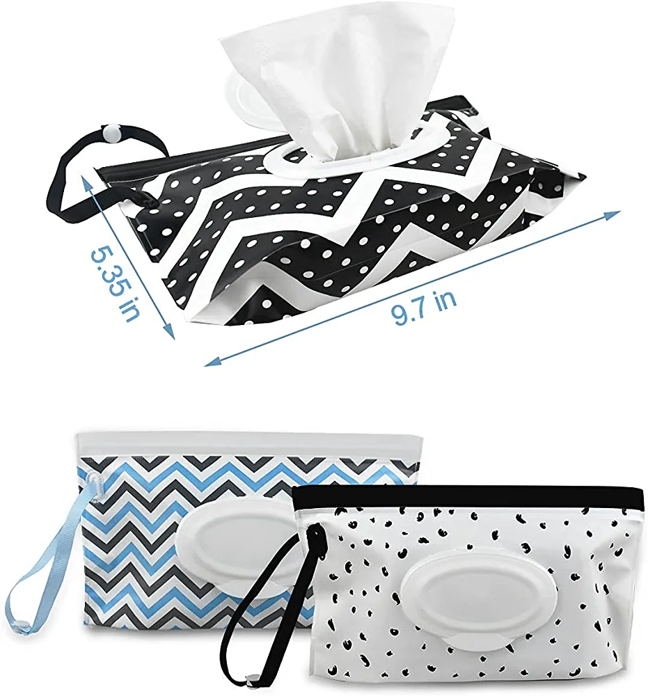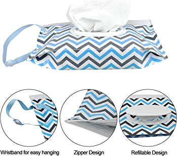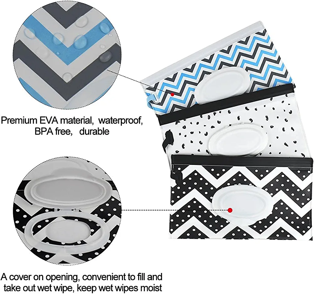 Travel-friendly baby wipes container with 3 refillable cases, designed to fit in diaper bags and carry wet wipes easily.